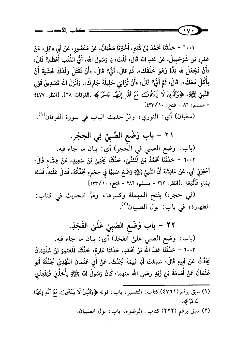 21 - بَابُ وَضْعِ الصَّبِيِّ فِي الحِجْرِ