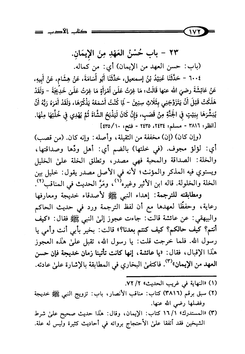 23 - بَابٌ: حُسْنُ العَهْدِ مِنَ الإِيمَانِ