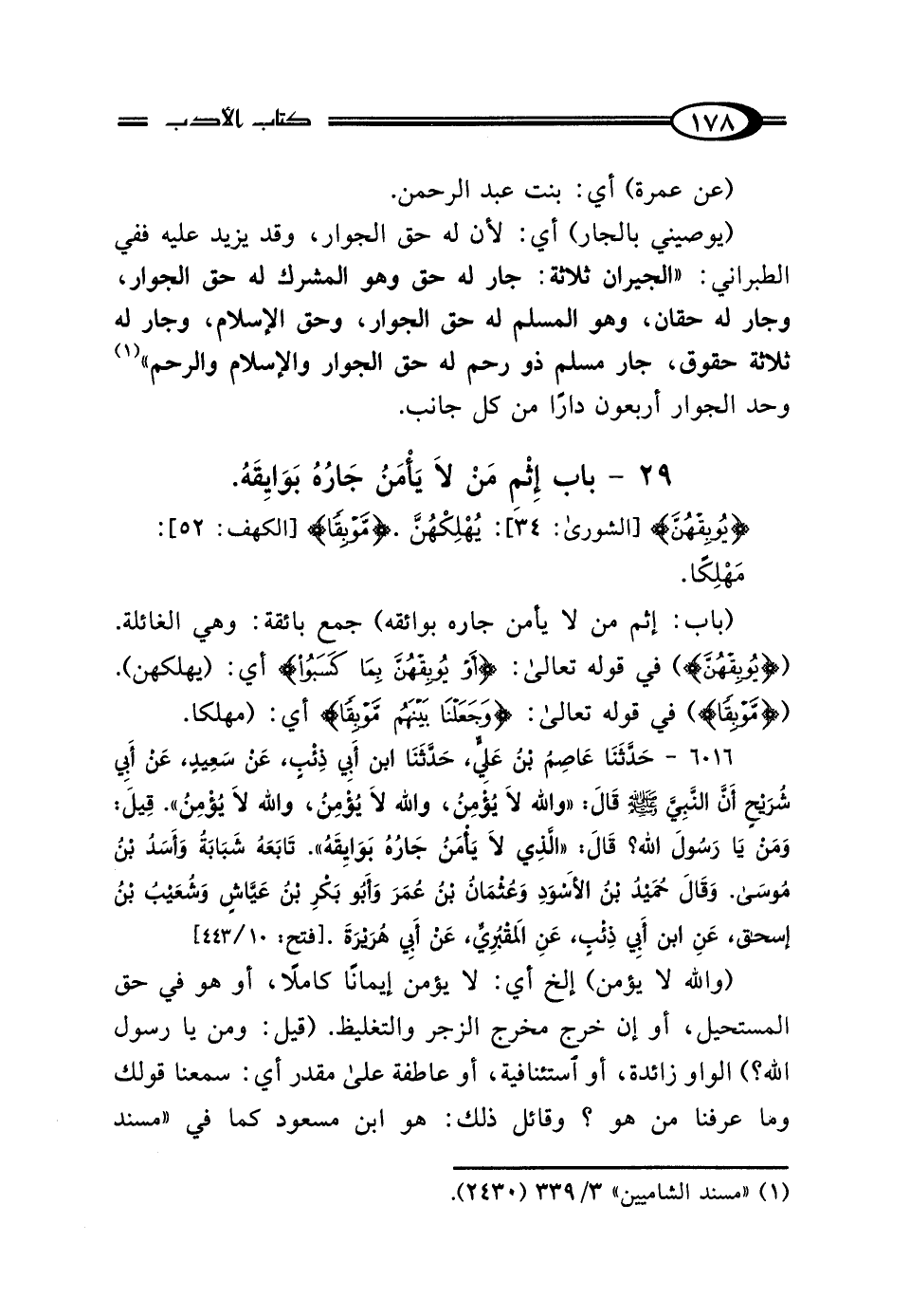 29 - بَابُ إِثْمِ مَنْ لَا يَأْمَنُ جَارُهُ بَوَايِقَهُ