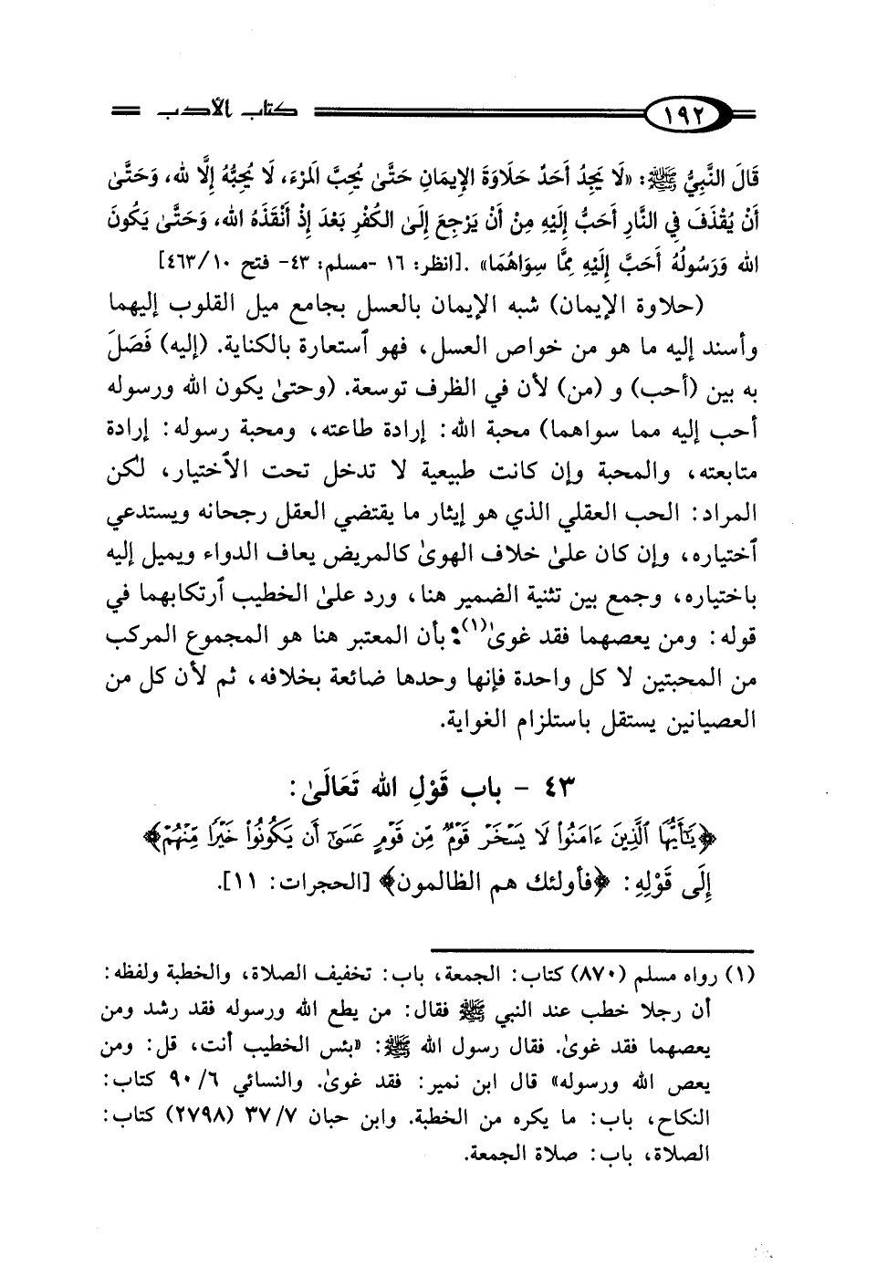 43 - باب قَوْلِ اللَّه تَعَالى: {يَا أَيُّهَا الَّذِينَ آمَنُوا لَا يَسْخَرْ قَوْمٌ مِنْ قَوْمٍ عَسَى أَنْ يَكُونُوا خَيْرًا مِنْهُمْ} إِلَى قَوْلِهِ: {فَأُولَئِكَ هُمُ الظَّالِمُونَ} [الحجرات: 11].