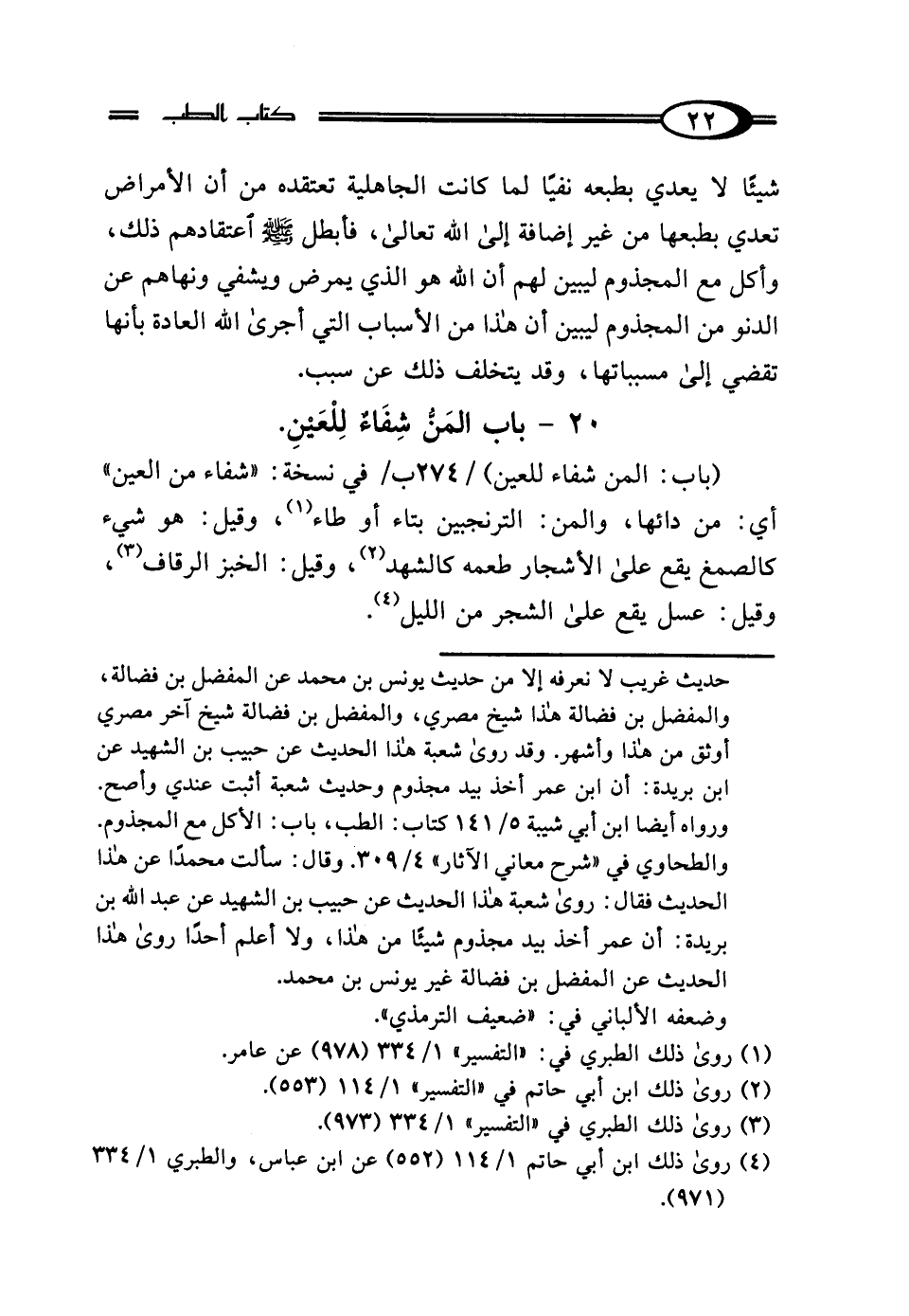 20 - بَابٌ: المَنُّ شِفَاءٌ لِلْعَيْنِ