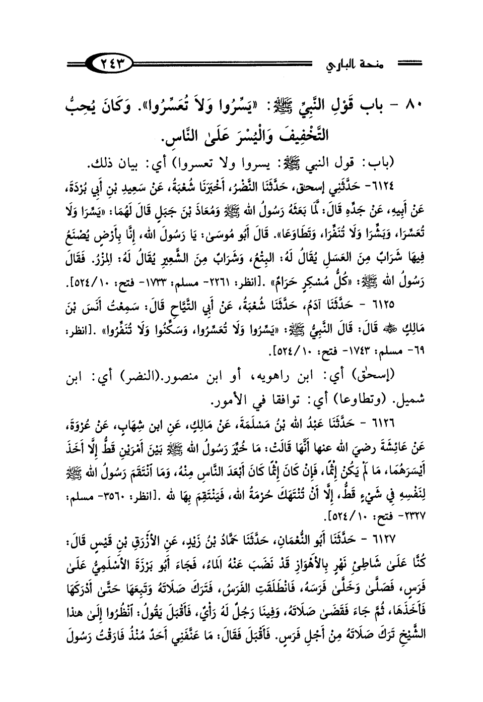 80 - بَابُ قَوْلِ النَّبِيِّ صَلَّى اللهُ عَلَيْهِ وَسَلَّمَ: "يَسِّرُوا وَلَا تُعَسِّرُوا"