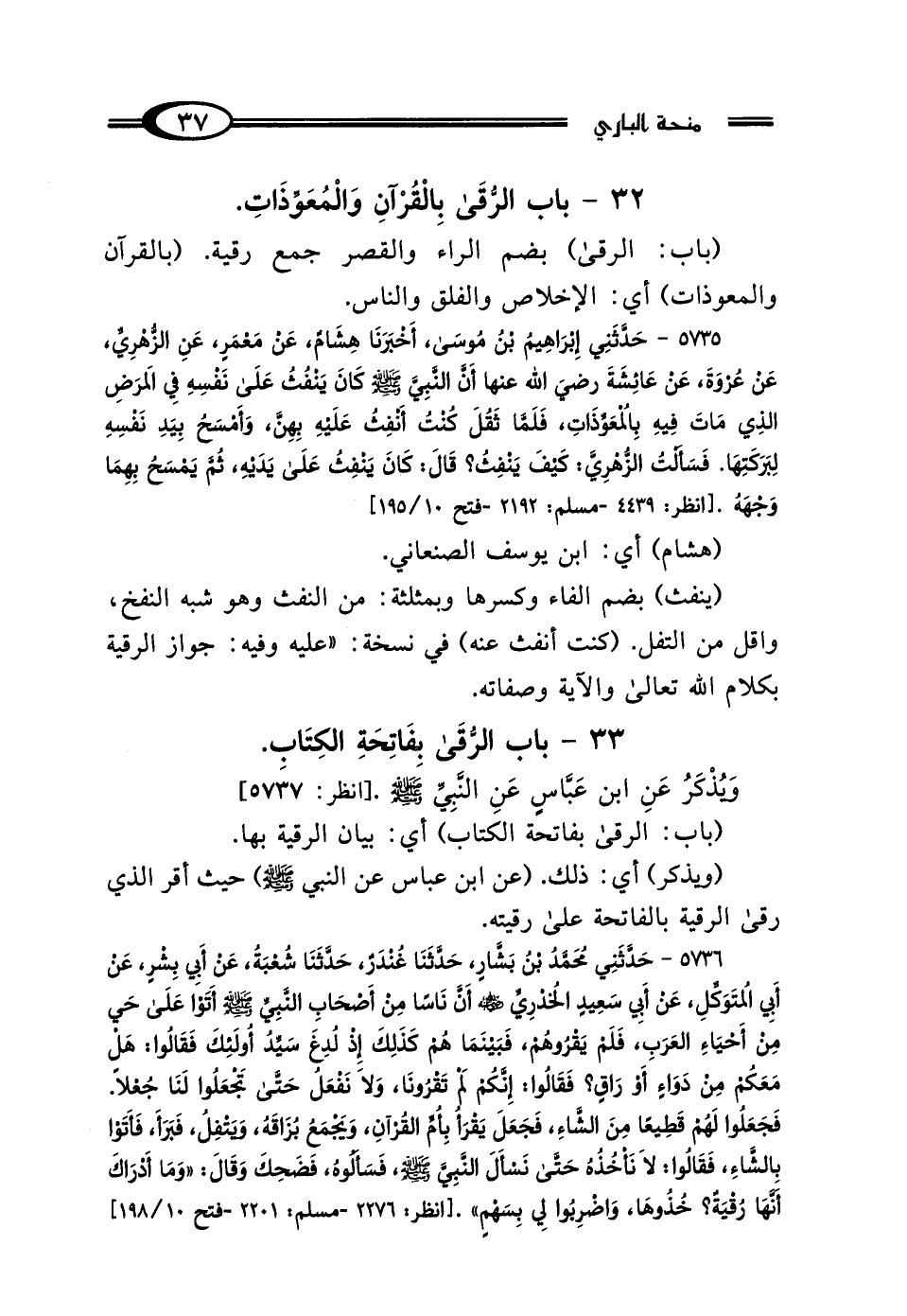 33 - بَابُ الرُّقَى بِفَاتِحَةِ الكِتَابِ
