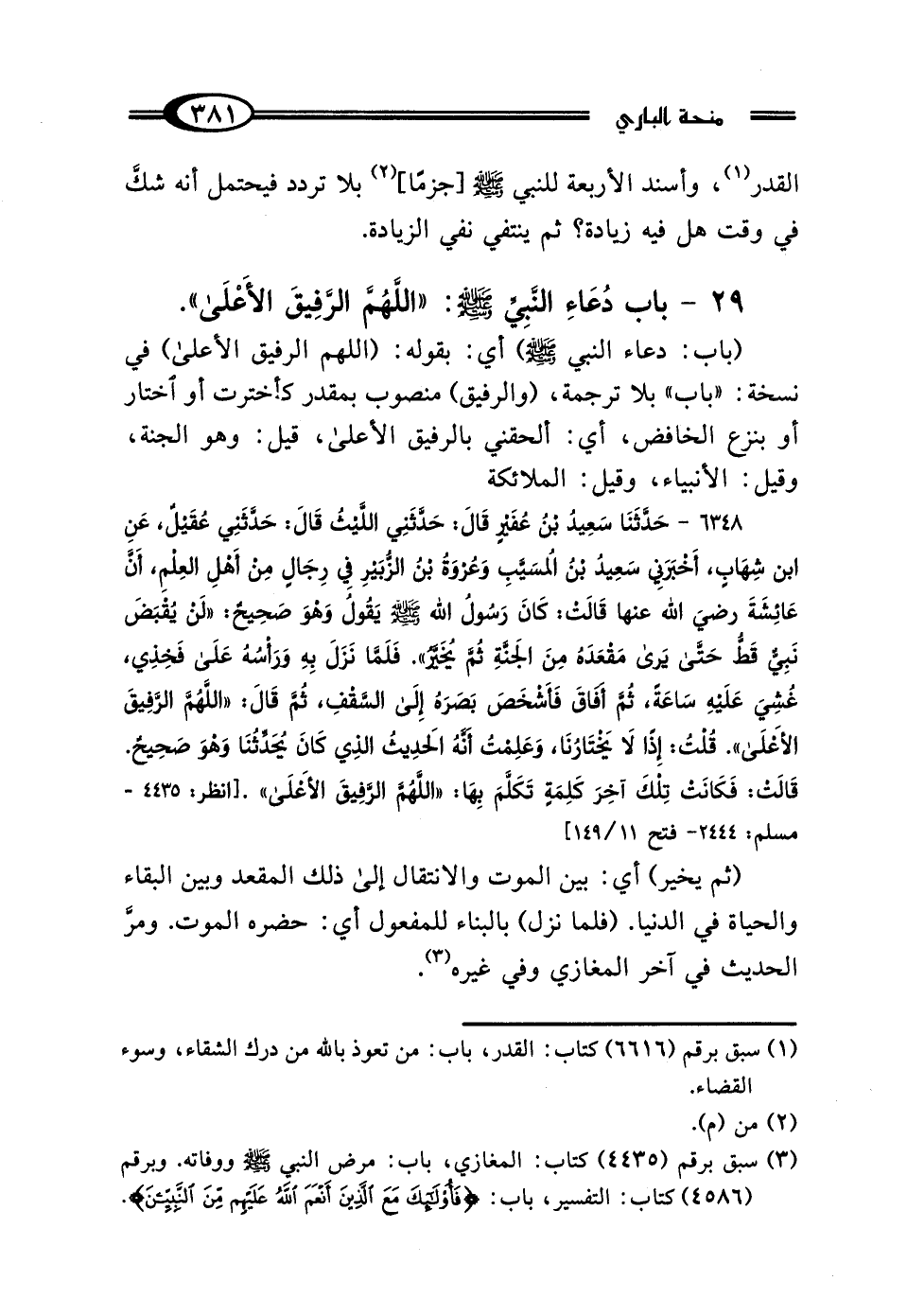 29 - بَابُ دُعَاءِ النَّبِيِّ صَلَّى اللهُ عَلَيْهِ وَسَلَّمَ: "اللَّهُمَّ الرَّفِيقَ الأَعْلَى"