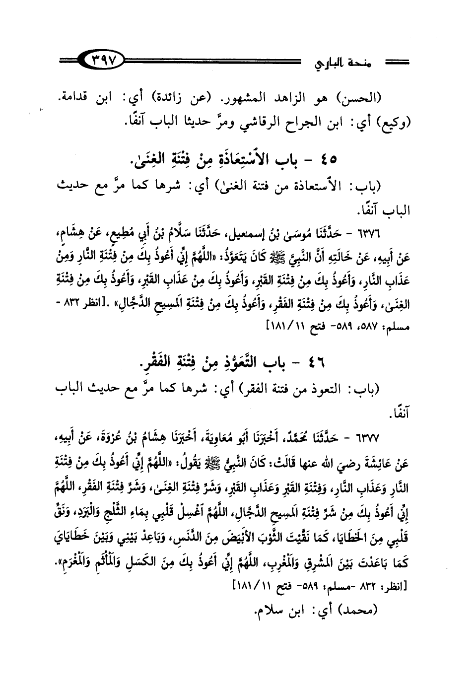 45 - بَابُ الاسْتِعَاذَةِ مِنْ فِتْنَةِ الغِنَى