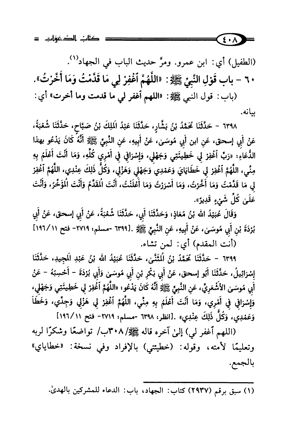 60 - بَابُ قَوْلِ النَّبِيِّ صَلَّى اللهُ عَلَيْهِ وَسَلَّمَ: "اللَّهُمَّ اغْفِرْ لِي مَا قَدَّمْتُ وَمَا أَخَّرْتُ"