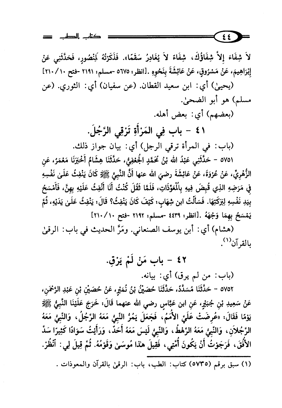 42 - بَابُ مَنْ لَمْ يَرْقِ