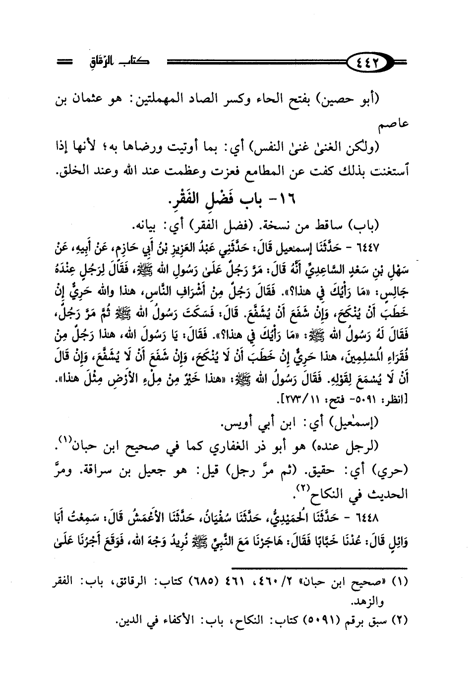(¬1) "صحيح ابن حبان" 2/ 460، 461 (685) كتاب: الرقائق، باب: الفقر والزهد.