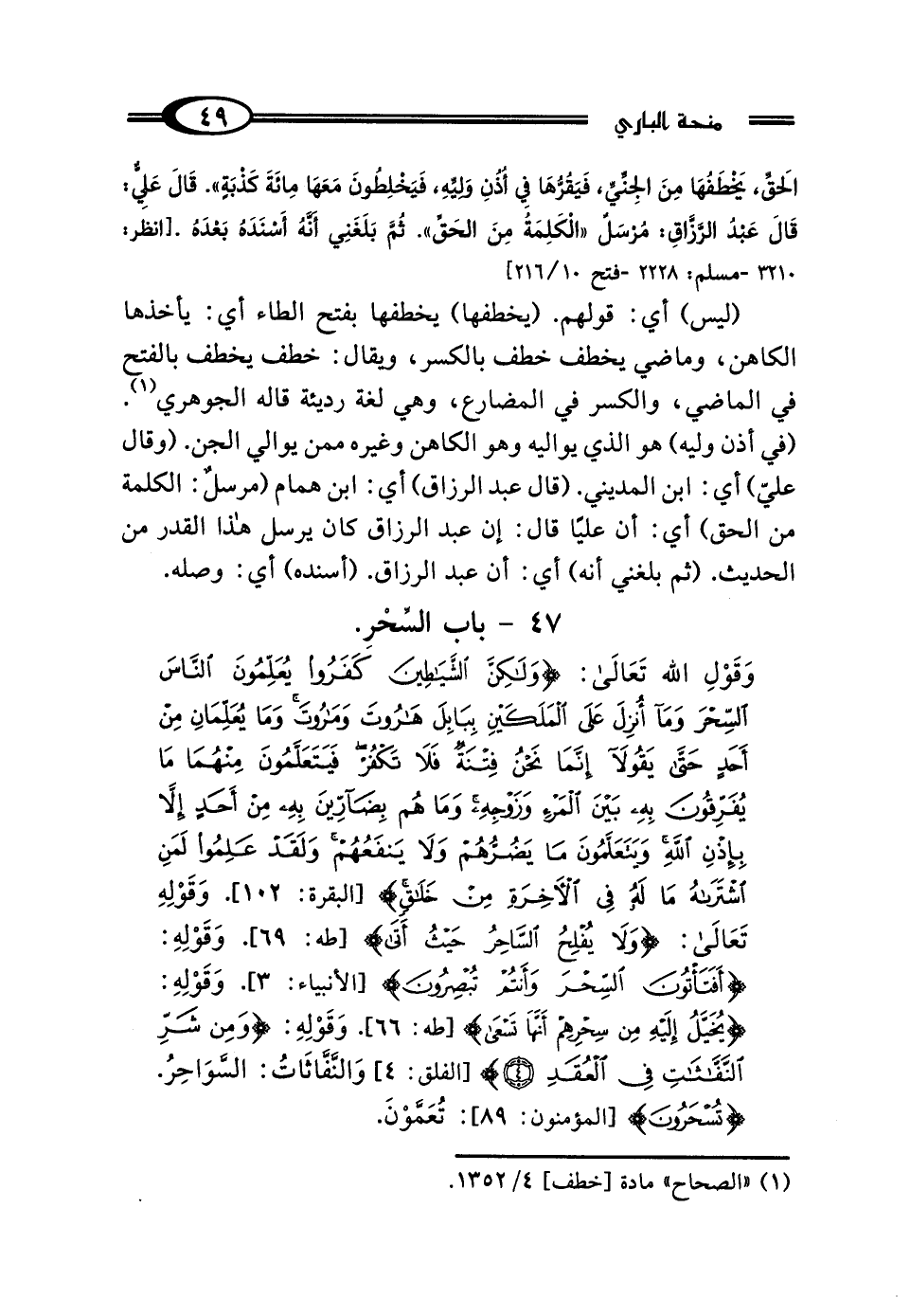 (ليس) أي: قولهم. (يخطفها) يخطفها بفتح الطاء أي: يأخذها الكاهن، وماضي يخطف خطف بالكسر، ويقال: خطف يخطف بالفتح في الماضي، والكسر في المضارع، وهي لغة رديئة قاله الجوهري (¬1). (في أذن وليه) هو الذي يواليه وهو الكاهن وغيره ممن يوالي الجن. (وقال عليّ) أي: ابن المديني. (قال عبد الرزاق) أي: ابن همام (مرسلٌ: الكلمة من الحق) أي: أن عليًّا قال: إن عبد الرزاق كان يرسل هذا القدر من الحديث. (ثم بلغني أنه) أي: أن عبد الرزاق. (أسنده) أي: وصله.