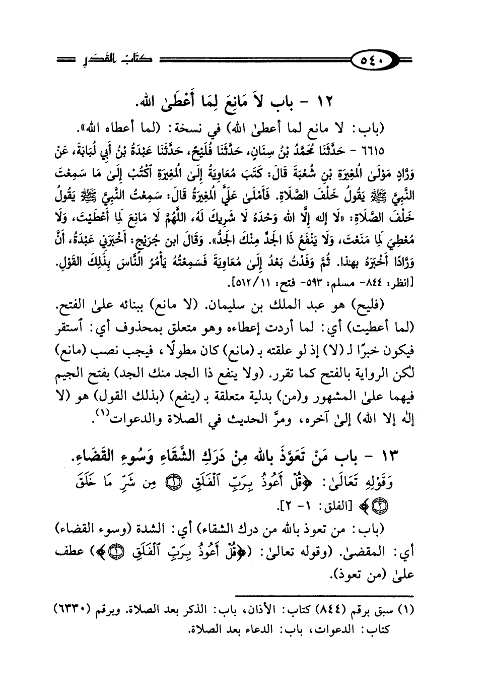 13 - بَابُ مَنْ تَعَوَّذَ بِاللَّهِ مِنْ دَرَكِ الشَّقَاءِ، وَسُوءِ القَضَاءِ