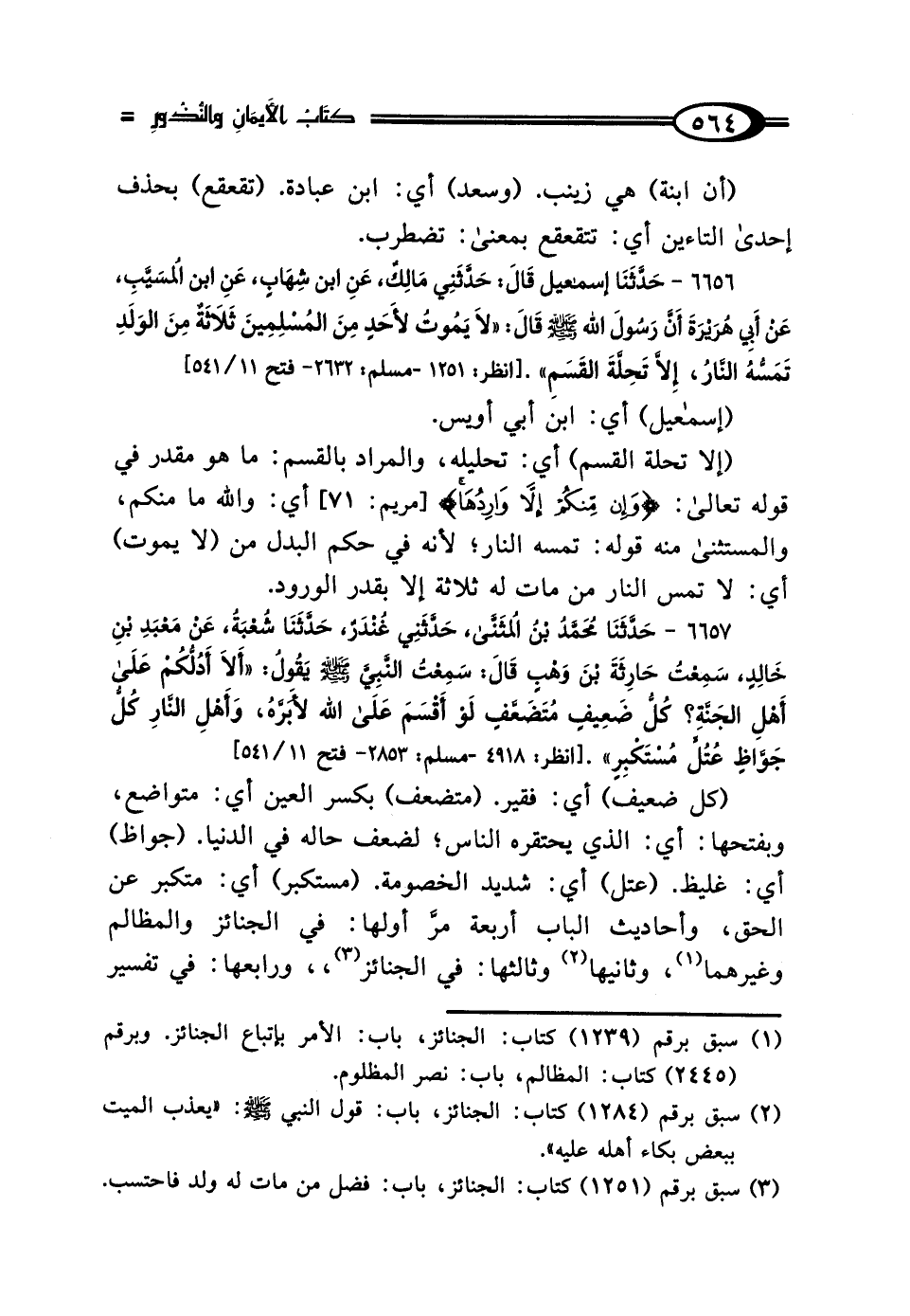 (¬3) سبق برقم (1251) كتاب: الجنائز، باب: فضل من مات له ولد فاحتسب.