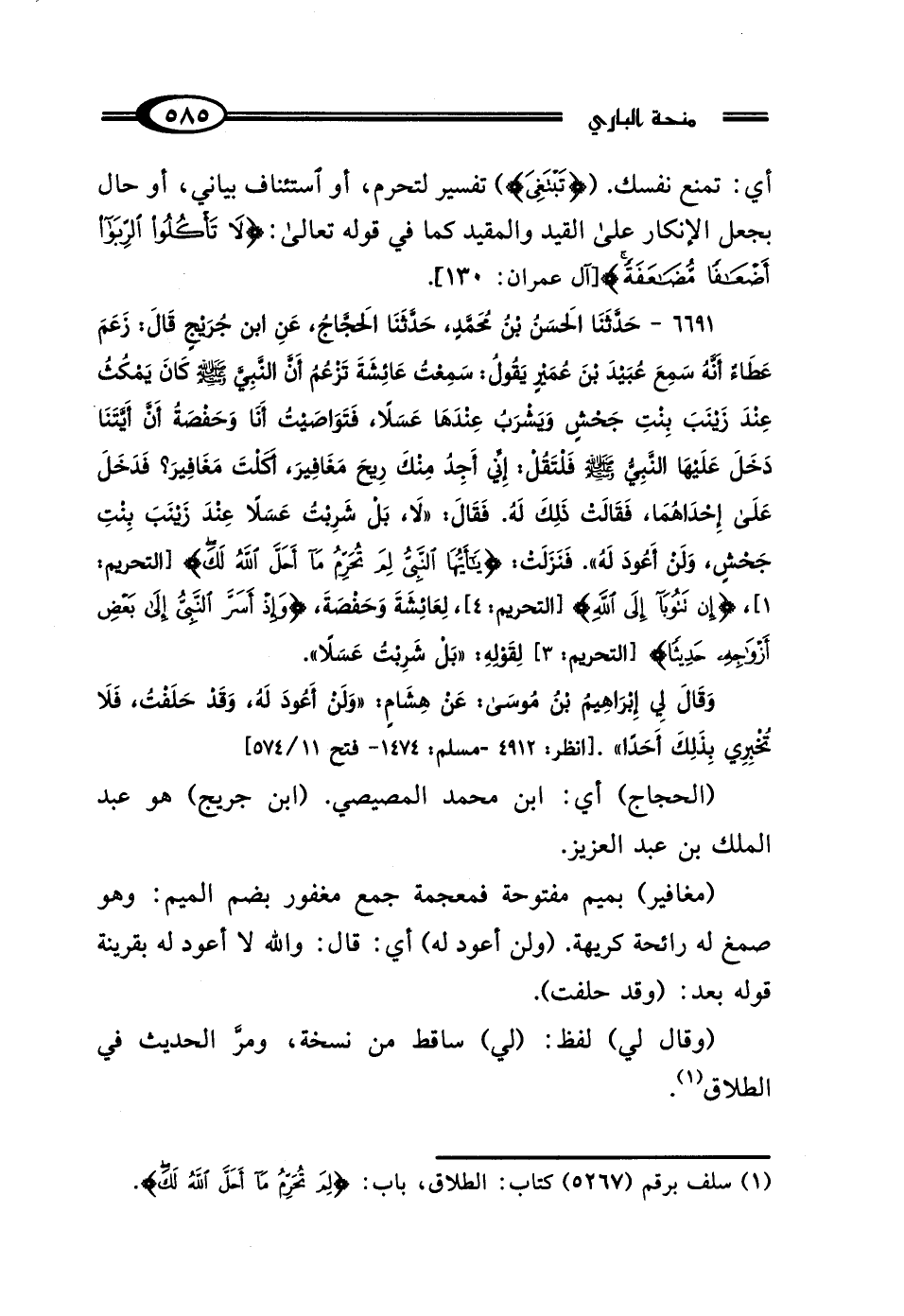 (¬1) سلف برقم (5267) كتاب: الطلاق، باب: {لِمَ تُحَرِّمُ مَا أَحَلَّ اللَّهُ لَكَ}.