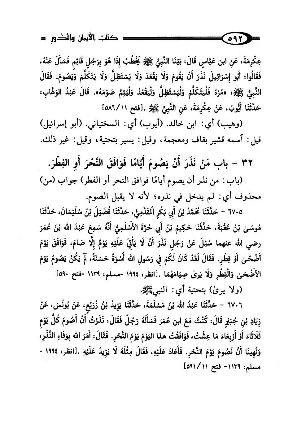 32 - بَابُ مَنْ نَذَرَ أَنْ يَصُومَ أَيَّامًا، فَوَافَقَ النَّحْرَ أَو الفِطْرَ