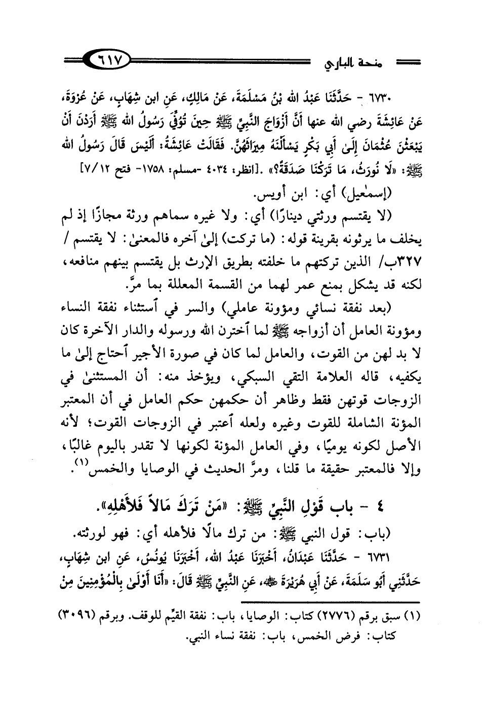 4 - بَابُ قَوْلِ النَّبِيِّ صَلَّى اللهُ عَلَيْهِ وَسَلَّمَ: "مَنْ تَرَكَ مَالًا فَلِأَهْلِهِ"