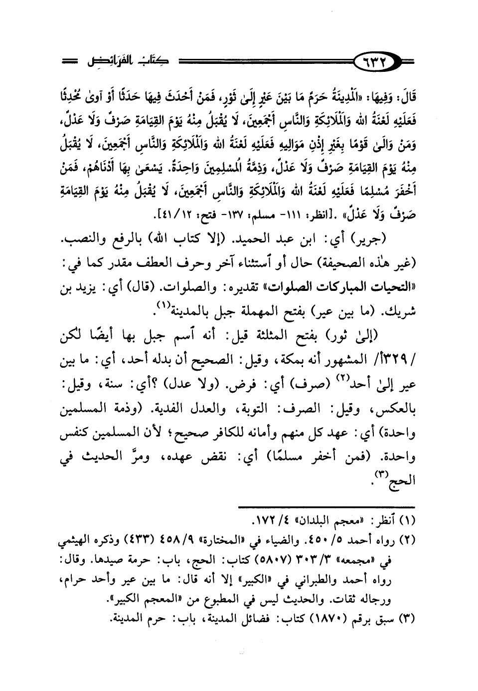 (¬2) رواه أحمد 5/ 450. والضياء في "المختارة" 9/ 458 (433) وذكره الهيثمي في "مجمعه" 3/ 303 (5857) كتاب: الحجِّ، باب: حرمة صيدها. وقال: رواه أحمد والطبراني في "الكبير" إلا أنه قال: ما بين عير وأحد حرام، ورجاله ثقات. والحديث ليس في المطبوع من "المعجم الكبير".