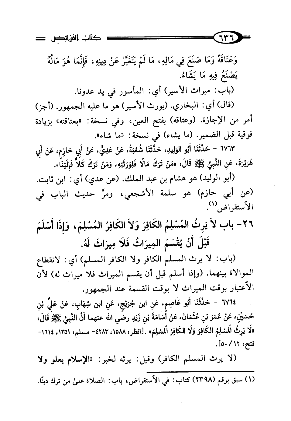 26 - بَابٌ: لَا يَرِثُ المُسْلِمُ الكَافِرَ وَلَا الكَافِرُ المُسْلِمَ