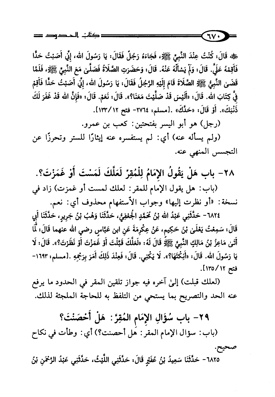 28 - بَابٌ: هَلْ يَقُولُ الإِمَامُ لِلْمُقِرِّ: لَعَلَّكَ لَمَسْتَ أَوْ غَمَزْتَ؟.