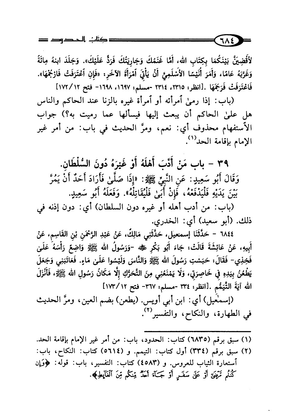 (¬1) سبق برقم (6835) كتاب: الحدود، باب: من أمر غير الإمام بإقامة الحدّ.