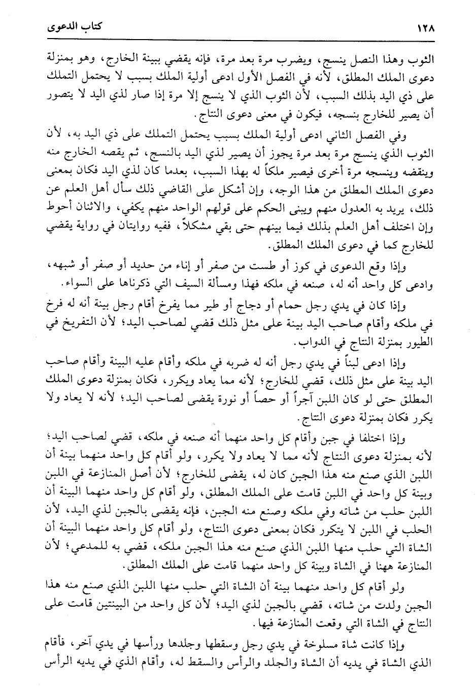 الثوب وهذا النصل ينسج، ويضرب مرة بعد مرة، فإنه يقضي ببينة الخارج، وهو بمنزلة دعوى الملك المطلق، لأنه في الفصل الأول ادعى أولية الملك بسبب لا يحتمل التملك على ذي اليد بذلك السبب، لأن الثوب الذي لا ينسج إلا مرة إذا صار لذي اليد لا يتصور أن يصير للخارج بنسجه، فيكون في معنى دعوى النتاج.