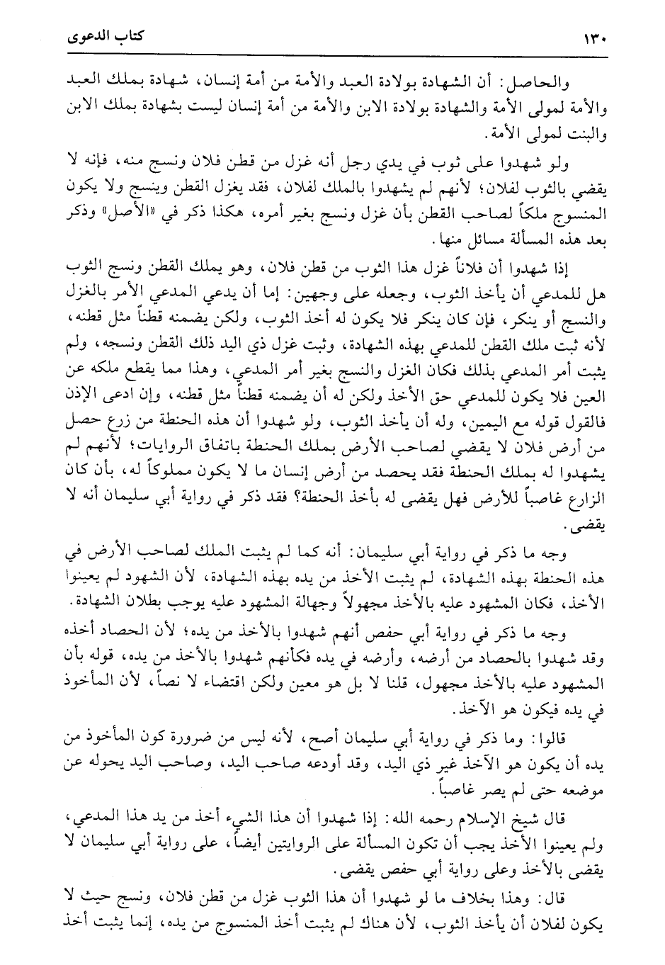 ولو شهدوا على ثوب في يدي رجل أنه غزل من قطن فلان ونسج منه، فإنه لا يقضي بالثوب لفلان؛ لأنهم لم يشهدوا بالملك لفلان، فقد يغزل القطن وينسج ولا يكون المنسوج ملكاً لصاحب القطن بأن غزل ونسج بغير أمره، هكذا ذكر في «الأصل» وذكر بعد هذه المسألة مسائل منها.