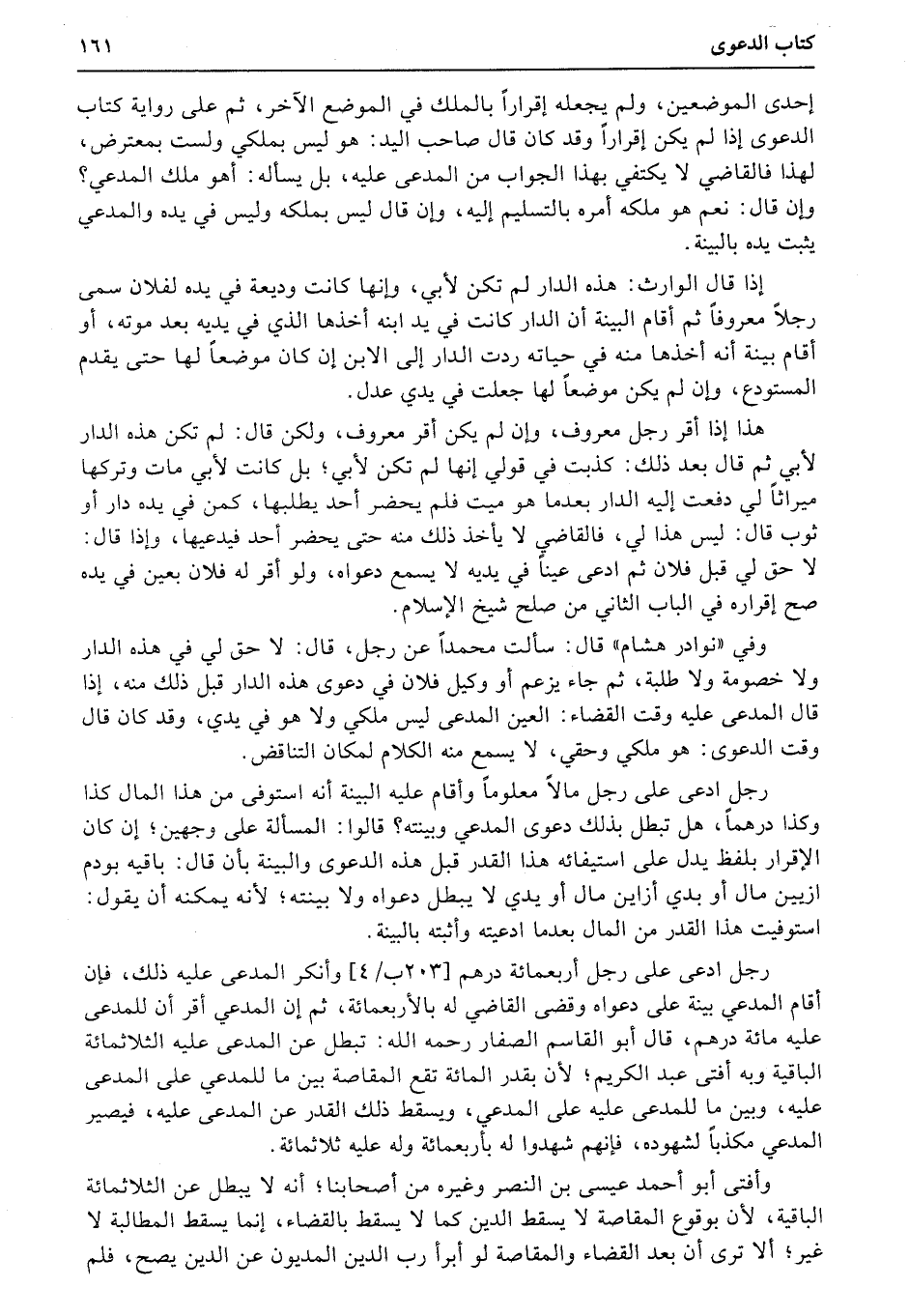 رجل ادعى على رجل أربعمائة درهم (203ب4) وأنكر المدعى عليه ذلك، فإن أقام المدعي بينة على دعواه وقضى القاضي له بالأربعمائة، ثم إن المدعي أقر أن للمدعى عليه مائة درهم، قال أبو القاسم الصفار رحمه الله: تبطل عن المدعى عليه الثلاثمائة الباقية وبه أفتى عبد الكريم؛ لأن بقدر المائة تقع المقاصة بين ما للمدعي على المدعى عليه، وبين ما للمدعى عليه على المدعي، ويسقط ذلك القدر عن المدعى عليه، فيصير المدعي مكذباً لشهوده، فإنهم شهدوا له بأربعمائة وله عليه ثلاثمائة.