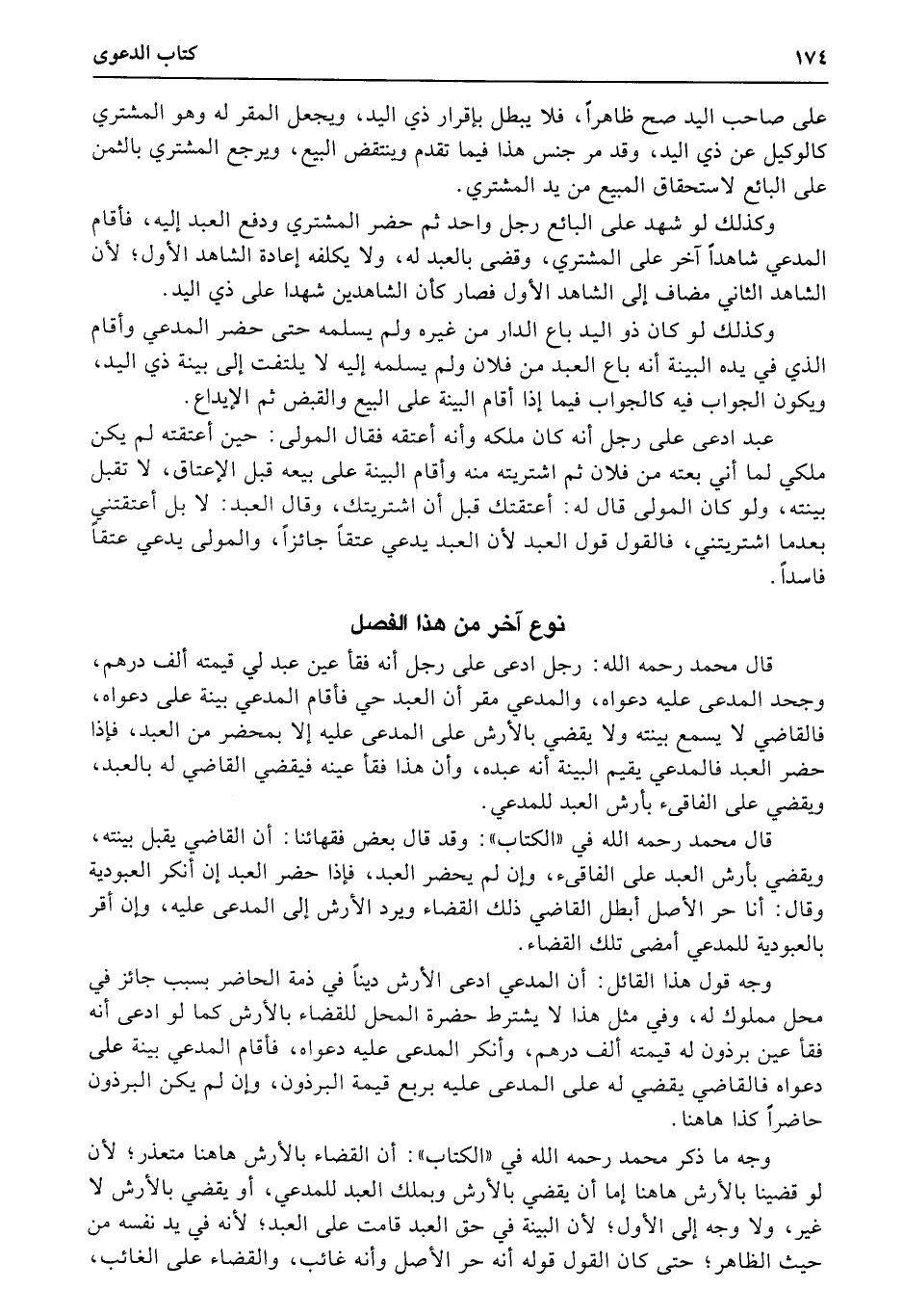 قال محمد رحمه الله: رجل ادعى على رجل أنه فقأ عين عبد لي قيمته ألف درهم، وجحد المدعى عليه دعواه، والمدعي مقر أن العبد حي فأقام المدعي بينة على دعواه، فالقاضي لا يسمع بينته ولا يقضي بالأرش على المدعى عليه إلا بمحضر من العبد، فإذا حضر العبد فالمدعي يقيم البينة أنه عبده، وأن هذا فقأ عينه فيقضي القاضي له بالعبد، ويقضي على الفاقيء بأرش العبد للمدعي.