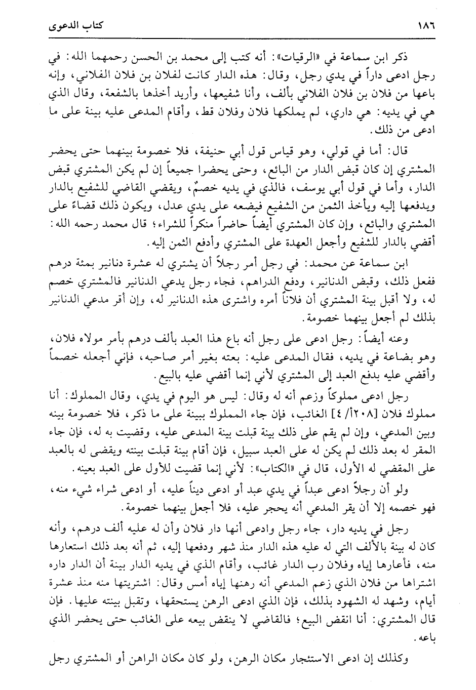ذكر ابن سماعة في «الرقيات» : أنه كتب إلى محمد بن الحسن رحمهما الله: في رجل ادعى داراً في يدي رجل، وقال: هذه الدار كانت لفلان بن فلان الفلاني، وإنه باعها من فلان بن فلان الفلاني بألف، وأنا شفيعها، وأريد أخذها بالشفعة، وقال الذي هي في يديه: هي داري، لم يملكها فلان وفلان قط، وأقام المدعى عليه بينة على ما ادعى من ذلك.