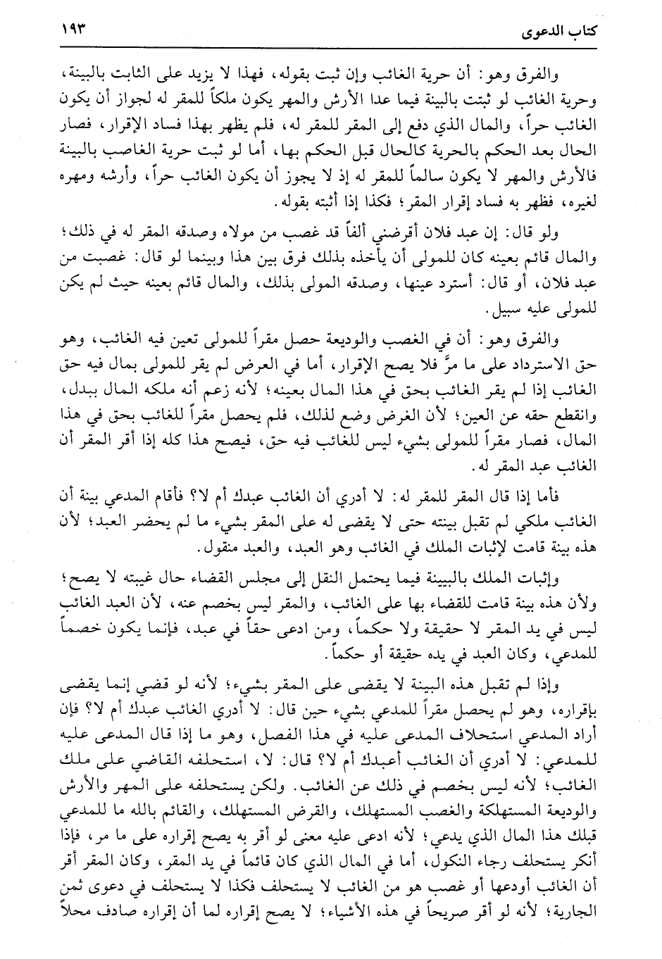 وإذا لم تقبل هذه البينة لا يقضى على المقر بشيء؛ لأنه لو قضى إنما يقضي بإقراره، وهو لم يحصل مقراً للمدعي بشيء حين قال: لا أدري الغائب عبدك أم لا؟ فإن أراد المدعي استحلاف المدعى عليه في هذا الفصل، وهو ما إذا قال المدعى عليه للمدعي: لا أدري أن الغائب أعبدك أم لا؟ قال: لا، استحلفه القاضي على ملك الغائب؛ لأنه ليس بخصم في ذلك عن الغائب.