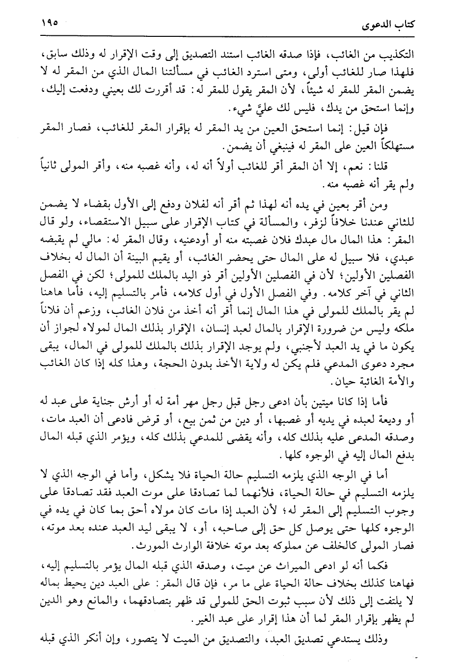ومن أقر بعين في يده أنه لهذا ثم أقر أنه لفلان ودفع إلى الأول بقضاء لا يضمن للثاني عندنا خلافاً لزفر، والمسألة في كتاب الإقرار على سبيل الاستقصاء، ولو قال المقر: هذا المال مال عبدك فلان غصبته منه أو أودعنيه، وقال المقر له: مالي لم يقبضه عبدي، فلا سبيل له على المال حتى يحضر الغائب، أو يقيم البينة أن المال له بخلاف الفصلين الأولين؛ لأن في الفصلين الأولين أقر ذو اليد بالملك للمولى؛ لكن في الفصل الثاني في آخر كلامه.
