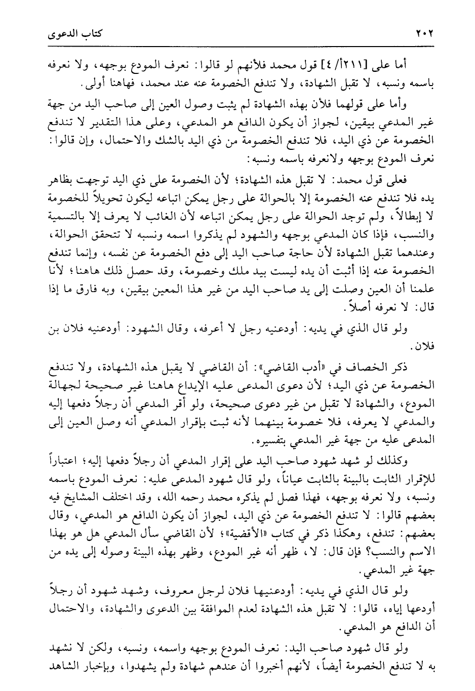 وأما على قولهما فلأن بهذه الشهادة لم يثبت وصول العين إلى صاحب اليد من جهة غير المدعي بيقين، لجواز أن يكون الدافع هو المدعي، وعلى هذا التقدير لا تندفع الخصومة عن ذي اليد، فلا تندفع الخصومة من ذي اليد بالشك والاحتمال، وإن قالوا: نعرف المودع بوجهه ولانعرفه باسمه ونسبه: