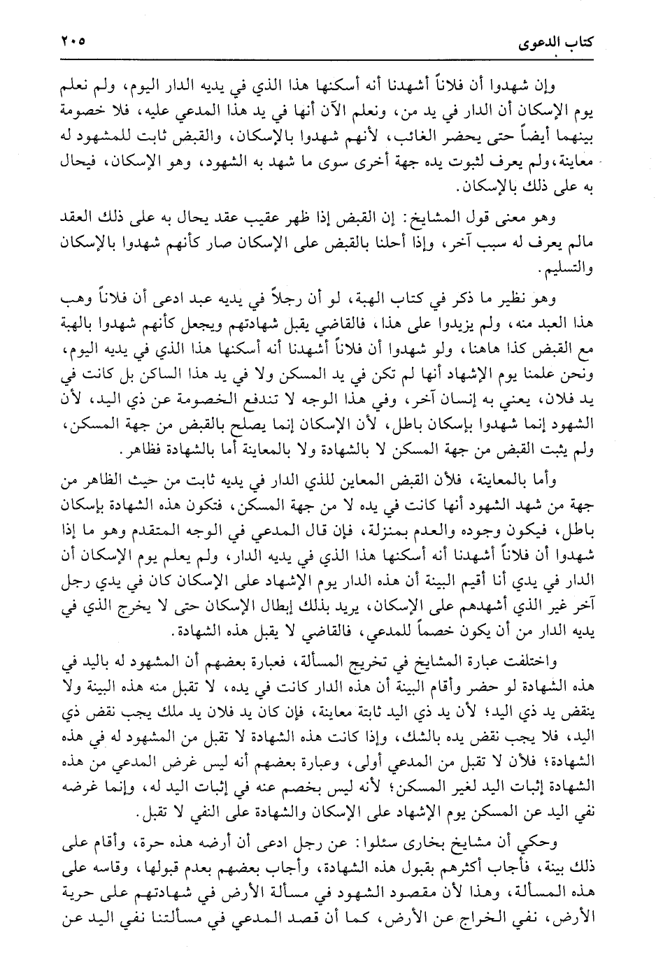 وأما بالمعاينة، فلأن القبض المعاين للذي الدار في يديه ثابت من حيث الظاهر من جهة من شهد الشهود أنها كانت في يده لا من جهة المسكن، فتكون هذه الشهادة بإسكان باطل، فيكون وجوده والعدم بمنزلة، فإن قال المدعي في الوجه المتقدم وهو ما إذا شهدوا أن فلاناً أشهدنا أنه أسكنها هذا الذي في يديه الدار، ولم يعلم يوم الإسكان أن الدار في يدي أنا أقيم البينة أن هذه الدار يوم الإشهاد على الإسكان كان في يدي رجل آخر غير الذي أشهدهم على الإسكان، يريد بذلك إبطال الإسكان حتى لا يخرج الذي في يديه الدار من أن يكون خصماً للمدعي، فالقاضي لا يقبل هذه الشهادة.