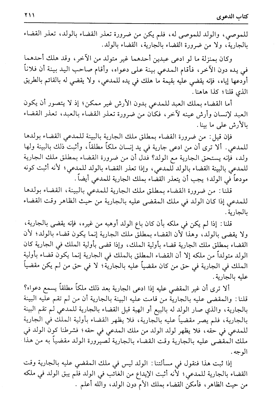ألا ترى أن غير المقضي عليه إذا ادعى الجارية بعد ذلك ملكاً مطلقاً يسمع دعواه؟ قلنا: والمقضى عليه بالجارية من قامت عليه البينة بالجارية أن من لم تقم عليه البينة بالجارية، والذي صار الولد له بالبيع أو الهبة قبل القضاء بالجارية للمدعي لم تقم البينة بالجارية، فلم يصر مقضياً عليه بالجارية، فلا يظهر القضاء بأولية الملك في الجارية للمدعي في حقه، فلا يظهر لولد الولد من ملك المدعي في حقه؛ فشرطنا كون الولد في ملك المقضى عليه بالجارية وقت القضاء بالجارية لصيرورة الولد مقضياً به من هذا الوجه.