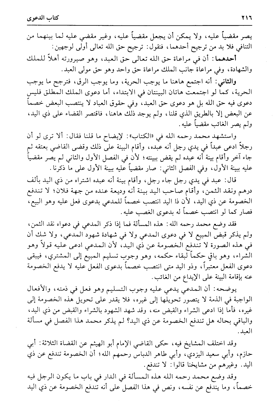 وقد وضع محمد رحمه الله هذه المسألة في الدار في باب ما يكون الرجل فيه خصماً، وما يندفع عن نفسه، ونص في هذا الفصل على أنه تندفع الخصومة عن ذي اليد