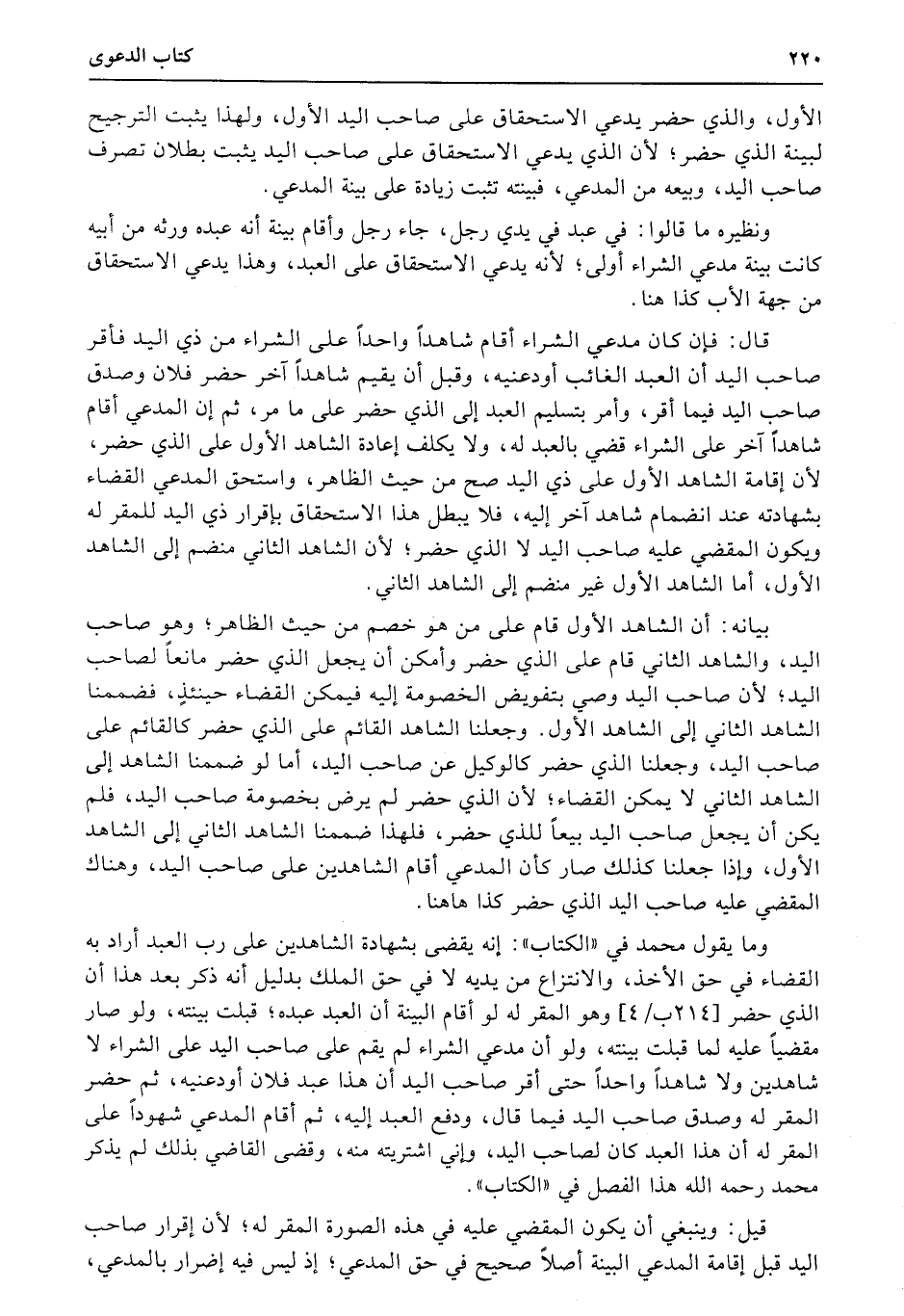 الأول، والذي حضر يدعي الاستحقاق على صاحب اليد الأول، ولهذا يثبت الترجيح لبينة الذي حضر؛ لأن الذي يدعي الاستحقاق على صاحب اليد يثبت بطلان تصرف صاحب اليد، وبيعه من المدعي، فبينته تثبت زيادة على بينة المدعي.