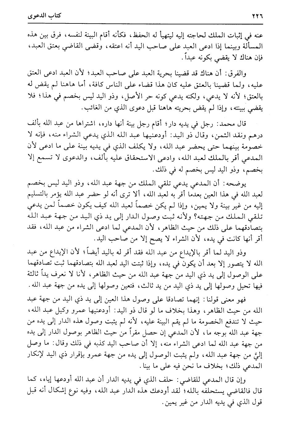 عنه في إثبات الملك لحاجته إليه ليتهيأ له الحفظ، فكأنه أقام البينة لنفسه، فرق بين هذه المسألة وبينما إذا ادعى العبد على صاحب اليد أنه اعتقه، وقضى القاضي بعتق العبد، فإن هناك لا يقضي بكونه عبداً.