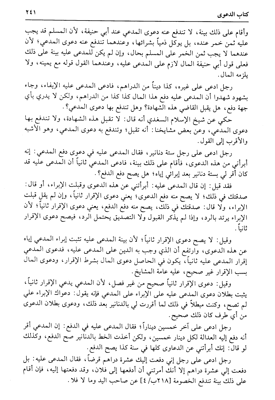 وقيل: دعوى الإقرار ثانياً صحيح من غير فصل، لأن المدعي يدعي الإقرار ثانياً، يثبت بطلان دعوى المدعى عليه على الإبراء على المدعي فإنه يقول: دعواك الإبراء علي لم تصح، وكنت مبطلاً في ذلك لما أقررت لي بالدنانير بعد ذلك، ودعوى بطلان الدعوى من أي طرف كان ذلك صحيح.