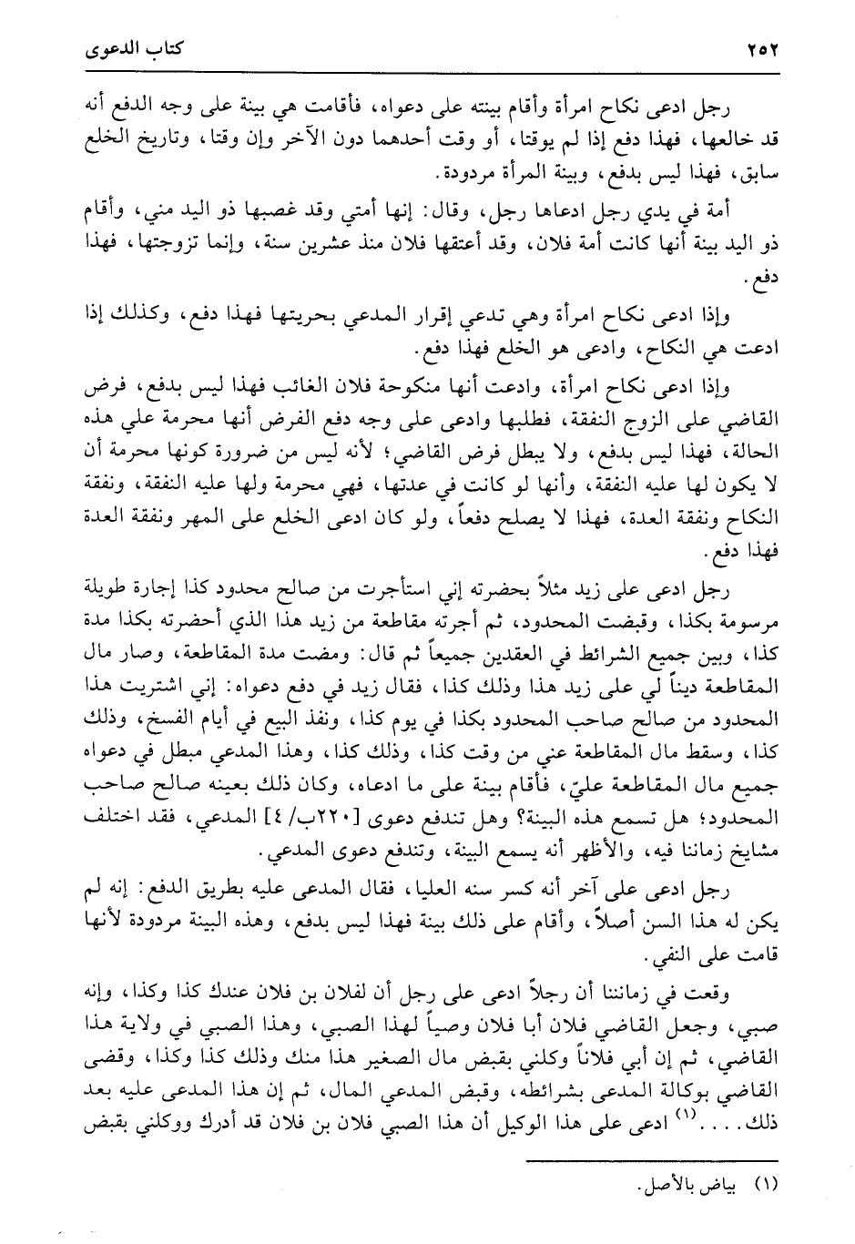 أمة في يدي رجل ادعاها رجل، وقال: إنها أمتي وقد غصبها ذو اليد مني، وأقام ذو اليد بينة أنها كانت أمة فلان، وقد أعتقها فلان منذ عشرين سنة، وإنما تزوجتها، فهذا دفع.m