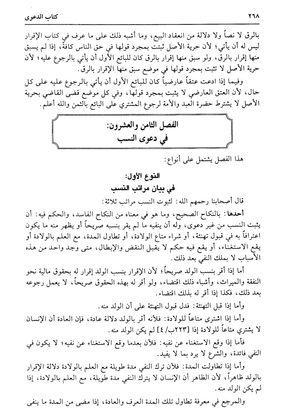 الفصل الثامن والعشرون: في دعوى النسب