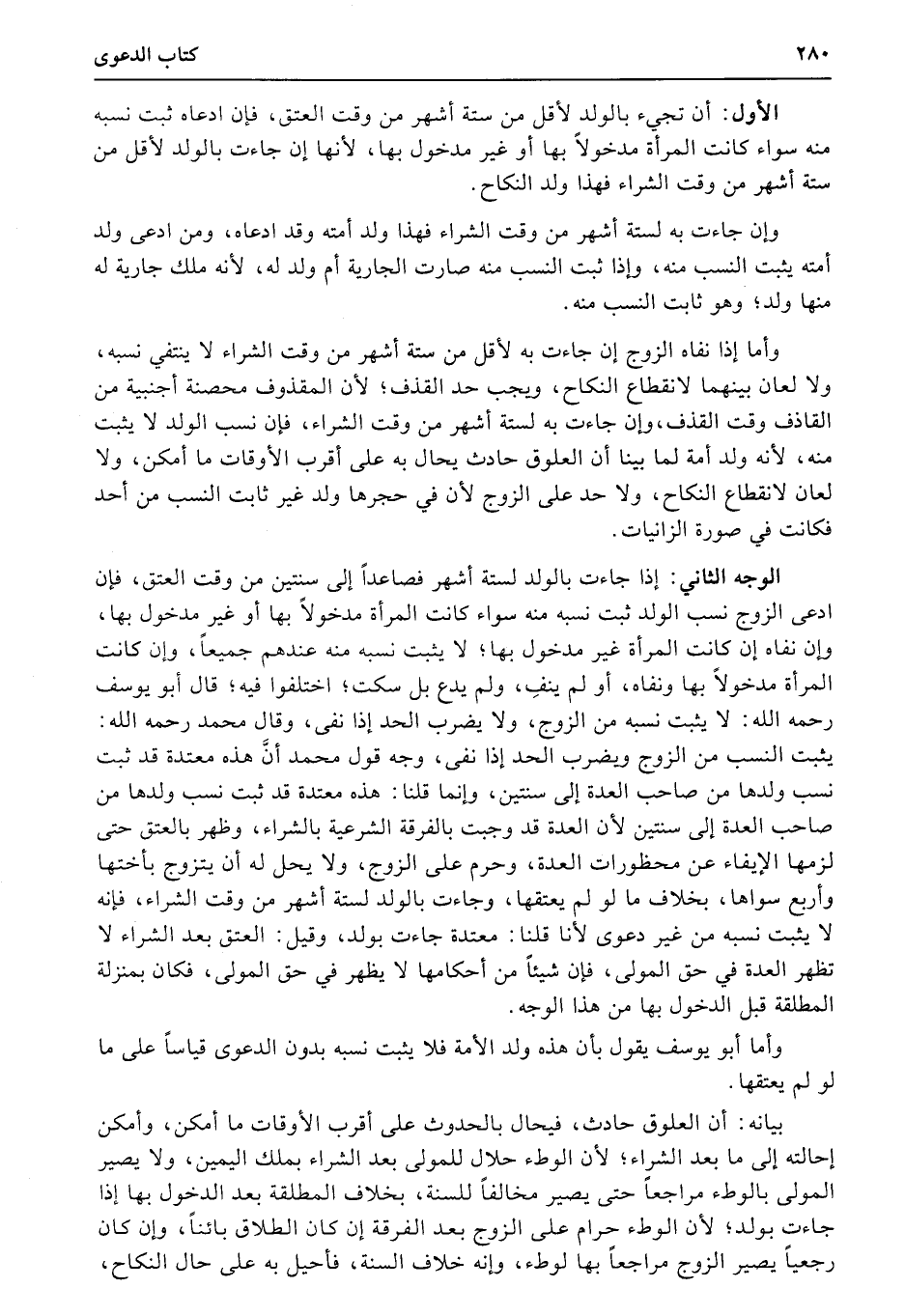 الوجه الثاني: إذا جاءت بالولد لستة أشهر فصاعداً إلى سنتين من وقت العتق، فإن ادعى الزوج نسب الولد ثبت نسبه منه سواء كانت المرأة مدخولاً بها أو غير مدخول بها، وإن نفاه إن كانت المرأة غير مدخول بها؛ لا يثبت نسبه منه عندهم جميعاً، وإن كانت المرأة مدخولاً بها ونفاه، أو لم ينفِ، ولم يدعُ بل سكت؛ اختلفوا فيه؛ قال أبو يوسف رحمه الله: لا يثبت نسبه من الزوج، ولا يضرب الحد إذا نفى، وقال محمد رحمه الله: يثبت النسب من الزوج ويضرب الحد إذا نفى، وجه قول محمد أنَّ هذه معتدة قد ثبت نسب ولدها من صاحب العدة إلى سنتين، وإنما قلنا: هذه معتدة قد ثبت نسب ولدها من صاحب العدة إلى سنتين لأن العدة قد وجبت بالفرقة الشرعية بالشراء، وظهر بالعتق حتى لزمها الإيفاء عن محظورات العدة، وحرم على الزوج، ولا يحل له أن يتزوج بأختها وأربع سواها، بخلاف ما لو لم يعتقها، وجاءت بالولد لستة أشهر من وقت الشراء، فإنه لا يثبت نسبه من غير دعوى لأنا قلنا: معتدة جاءت بولد، وقيل: العتق بعد الشراء لا تظهر العدة في حق المولى، فإن شيئاً من أحكامها لا يظهر في حق المولى، فكان بمنزلة المطلقة قبل الدخول بها من هذا الوجه.