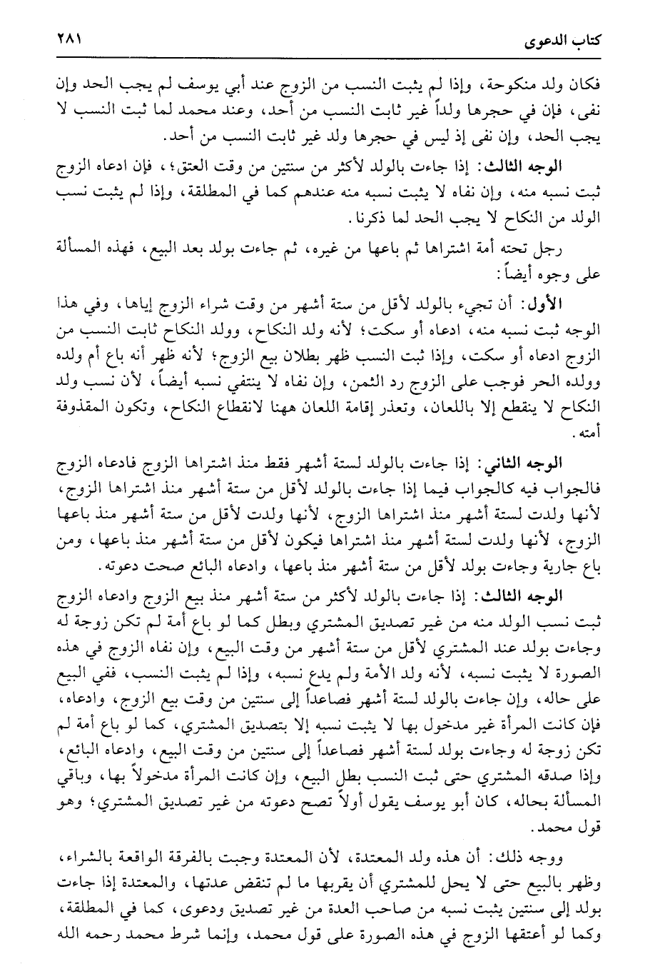 الوجه الثالث: إذا جاءت بالولد لأكثر من ستة أشهر منذ بيع الزوج وادعاه الزوج ثبت نسب الولد منه من غير تصديق المشتري وبطل كما لو باع أمة لم تكن زوجة له وجاءت بولد عند المشتري لأقل من ستة أشهر من وقت البيع، وإن نفاه الزوج في هذه الصورة لا يثبت نسبه، لأنه ولد الأمة ولم يدع نسبه، وإذا لم يثبت النسب، ففي البيع على حاله، وإن جاءت بالولد لستة أشهر فصاعداً إلى سنتين من وقت بيع الزوج، وادعاه، فإن كانت المرأة غير مدخول بها لا يثبت نسبه إلا بتصديق المشتري، كما لو باع أمة لم تكن زوجة له وجاءت بولد لستة أشهر فصاعداً إلى سنتين من وقت البيع، وادعاه البائع، وإذا صدقه المشتري حتى ثبت النسب بطل البيع، وإن كانت المرأة مدخولاً بها، وباقي المسألة بحاله، كان أبو يوسف يقول أولاً تصح دعوته من غير تصديق المشتري؛ وهو قول محمد.