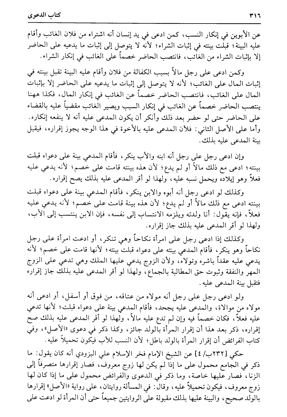 حكي (232ب4) عن الشيخ الإمام فخر الإسلام علي البزودي أنه كان يقول: ماذكر في الجامع محمول على ما إذا لم يكن لها زوج معروف، فصار إقرارها متصرفاً إلى الزنا، فصار عليها خاصة، وما ذكر في الدعوى والفرائض محمول على ما إذا كان لها زوج معروف، فيكون تحميلاً عليه، وقال: في المسألة روايتان، على رواية «الأصل» إقرارها بالولد صحيح، والبينة عليها بذلك مقبولة على الروايتين جميعاً حتى أن المرأة لو ادعت على