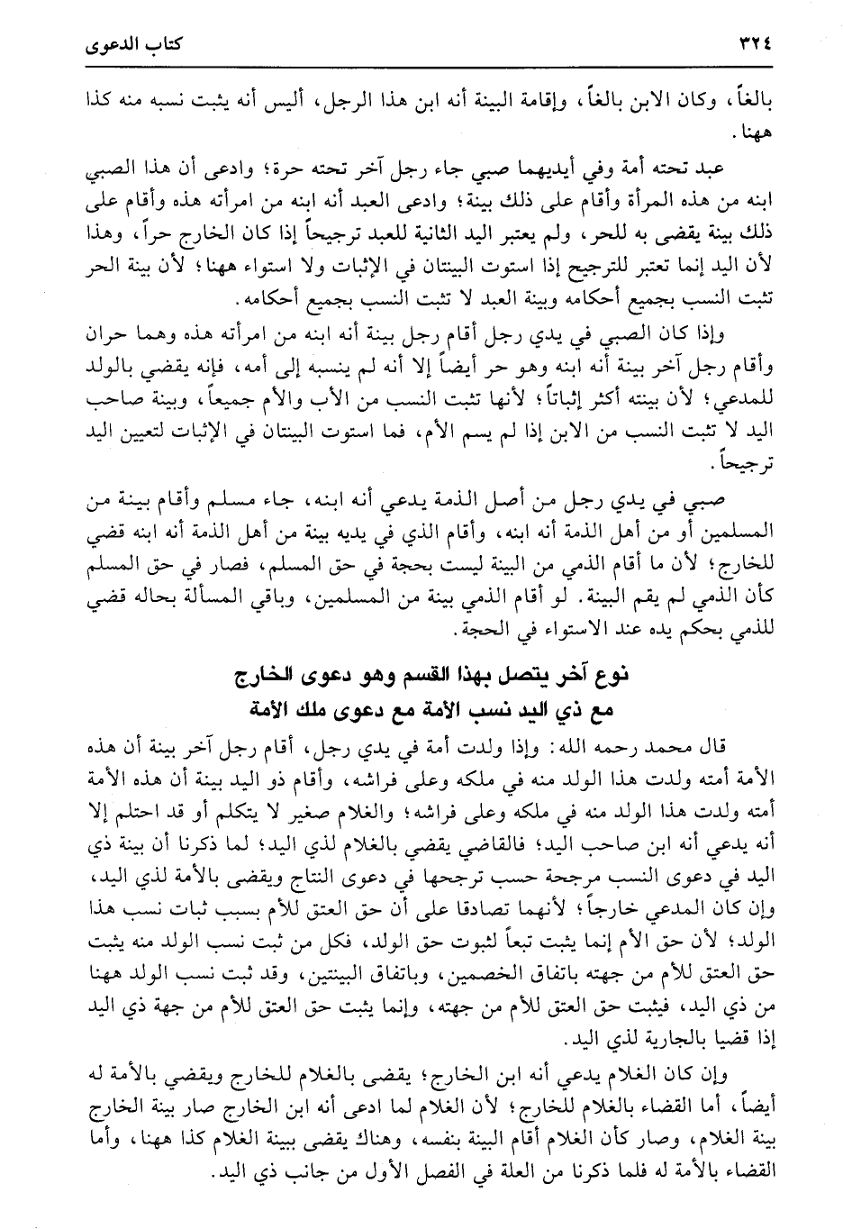نوع آخر يتصل بهذا القسم وهو دعوى الخارج مع ذي اليد نسب الأمة مع دعوى ملك الأمة
