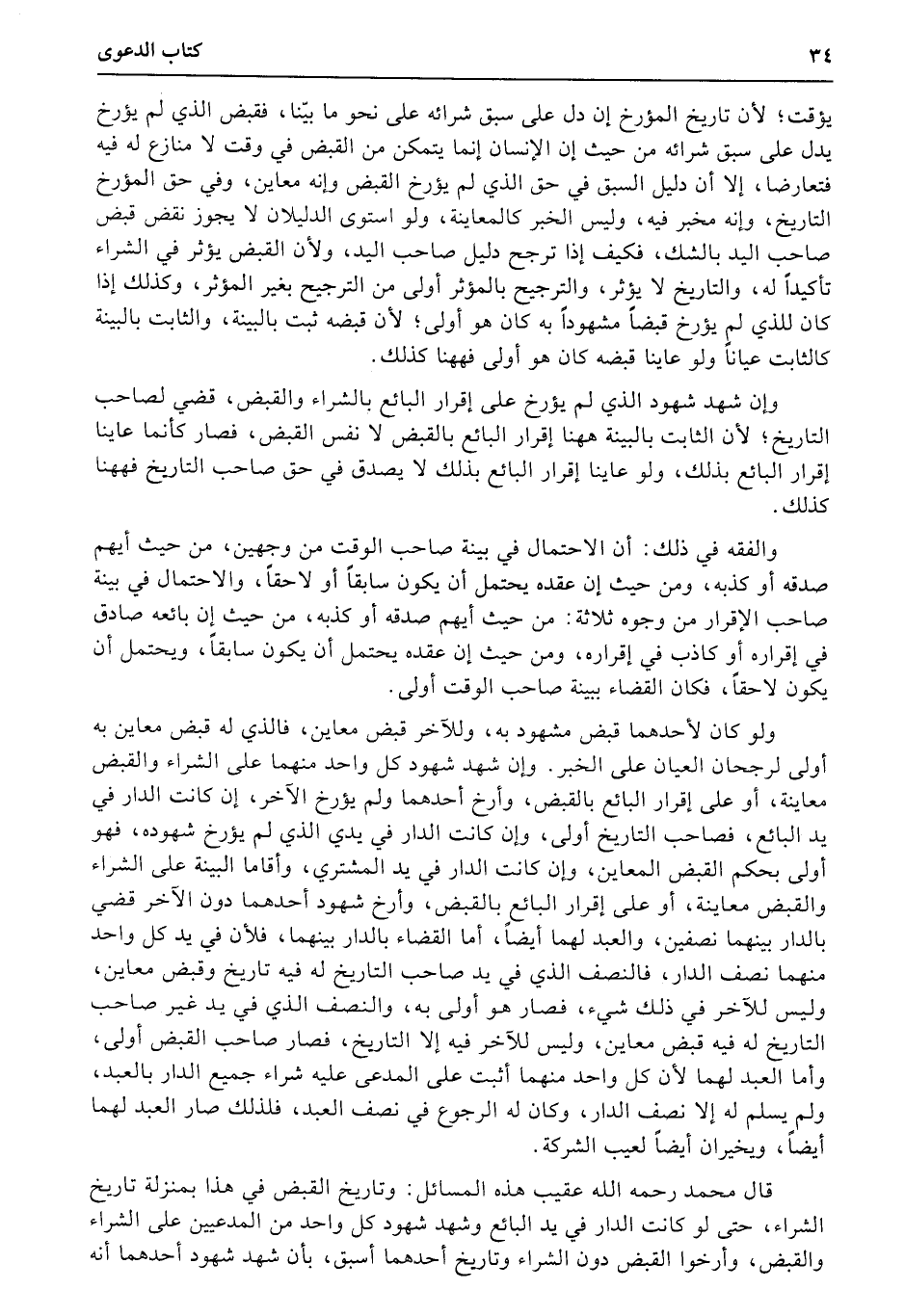 قال محمد رحمه الله عقيب هذه المسائل: وتاريخ القبض في هذا بمنزلة تاريخ الشراء، حتى لو كانت الدار في يد البائع وشهد شهود كل واحد من المدعيين على الشراء والقبض، وأرخوا القبض دون الشراء وتاريخ أحدهما أسبق، بأن شهد شهود أحدهما أنه