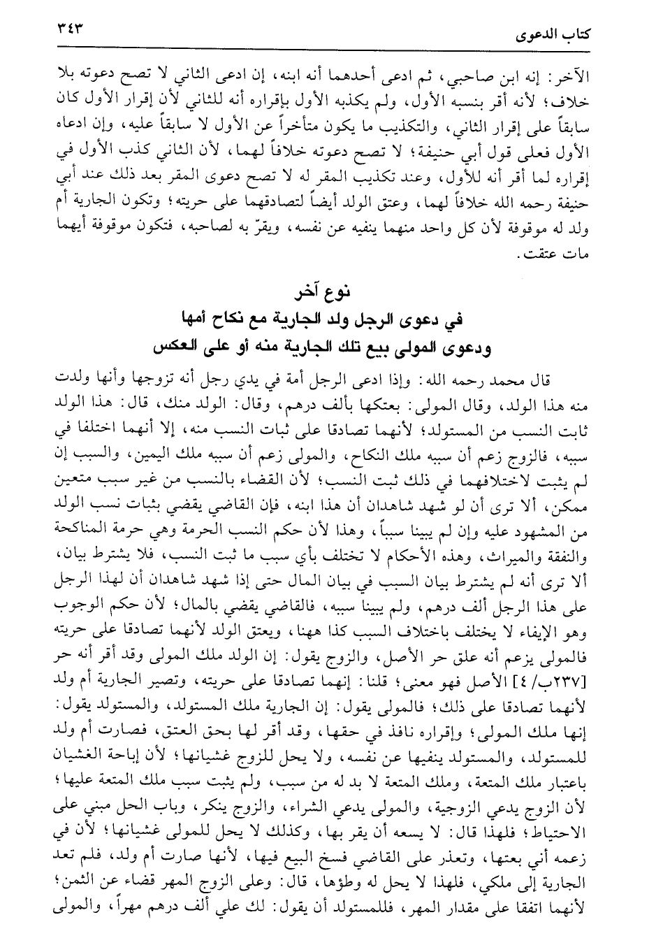 نوع آخر في دعوى الرجل ولد الجارية مع نكاح أمها ودعوى المولى بيع تلك الجارية منه أو على العكس