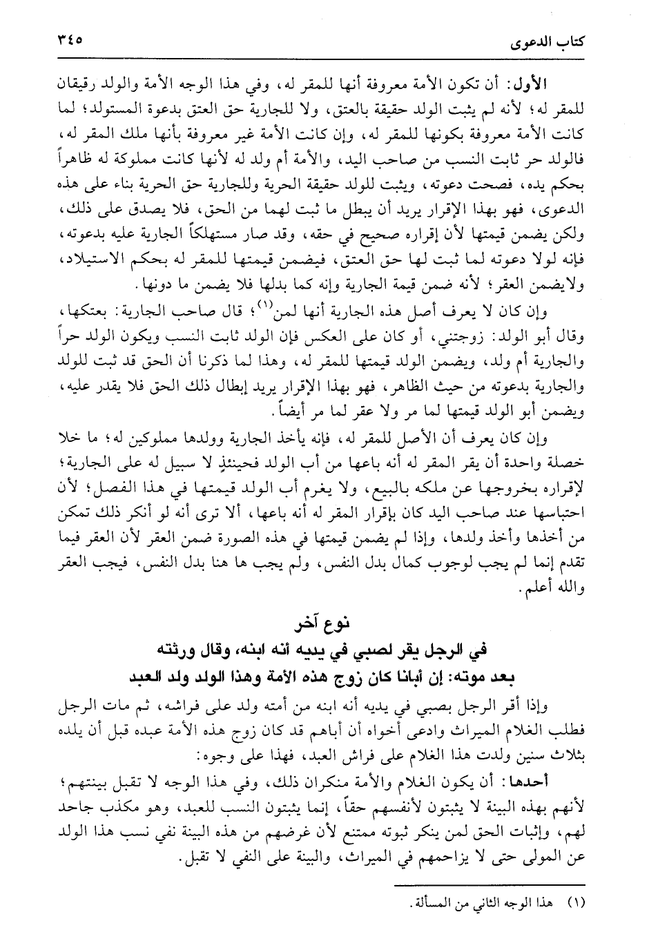 وإذا أقر الرجل بصبي في يديه أنه ابنه من أمته ولد على فراشه، ثم مات الرجل فطلب الغلام الميراث وادعى أخواه أن أباهم قد كان زوج هذه الأمة عبده قبل أن يلده بثلاث سنين ولدت هذا الغلام على فراش العبد، فهذا على وجوه: