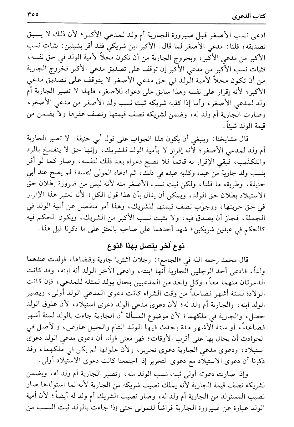 ادعى نسب الأصغر قبل صيرورة الجارية أم ولد لمدعي الأكبر؛ لأن ذلك لا يسبق تصديقه، قلنا: مدعي الأصغر لما قال: الأكبر ابن شريكي فقد أقر بشيئين: بثبات نسب الأكبر من مدعي الأكبر، وبخروج الجارية من أن تكون محلاً لأمية الولد في حق نفسه، فثبات نسب الأكبر من مدعي الأكبر إن توقف على تصديق مدعي الأكبر فخروج الجارية من أن تكون محلاً لأمية الولد في حق مدعي الأصغر لا يتوقف على تصديق مدعي الأكبر؛ لأنه إقرار على نفسه وهذا سابق على دعواه للأصغر، فلهذا لا تصير الجارية أم ولد لمدعي الأصغر، وأما إذا كذبه شريكه ثبت نسب ولد الأصغر من مدعي الأصغر، وصارت الجارية أم ولد له، وضمن لشريكه نصف قيمتها ونصف عقرها ولا يضمن من قيمة الولد شيئاً.