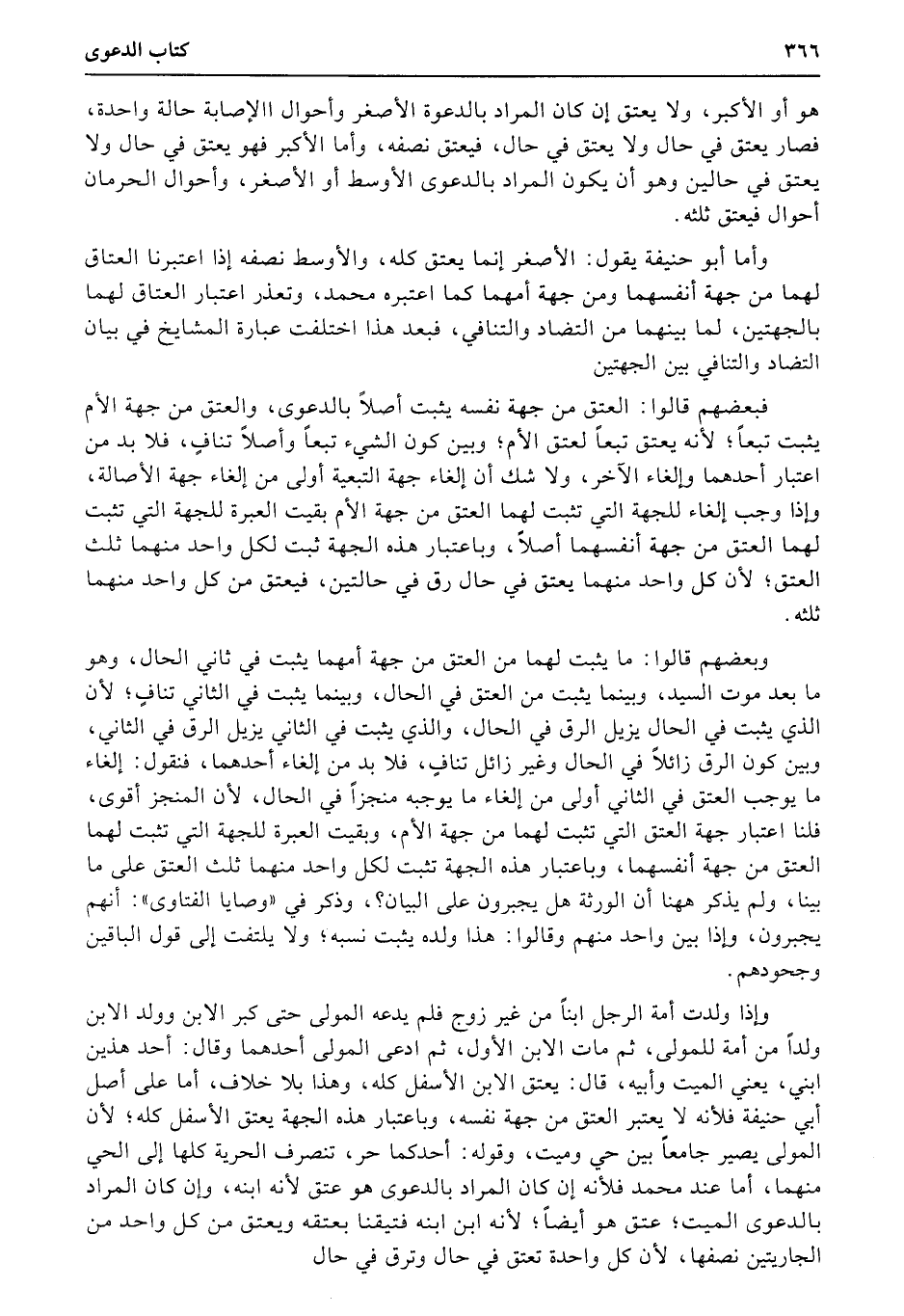 هو أو الأكبر، ولا يعتق إن كان المراد بالدعوة الأصغر وأحوال االإصابة حالة واحدة، فصار يعتق في حال ولا يعتق في حال، فيعتق نصفه، وأما الأكبر فهو يعتق في حال ولا يعتق في حالين وهو أن يكون المراد بالدعوى الأوسط أو الأصغر، وأحوال الحرمان أحوال فيعتق ثلثه.
