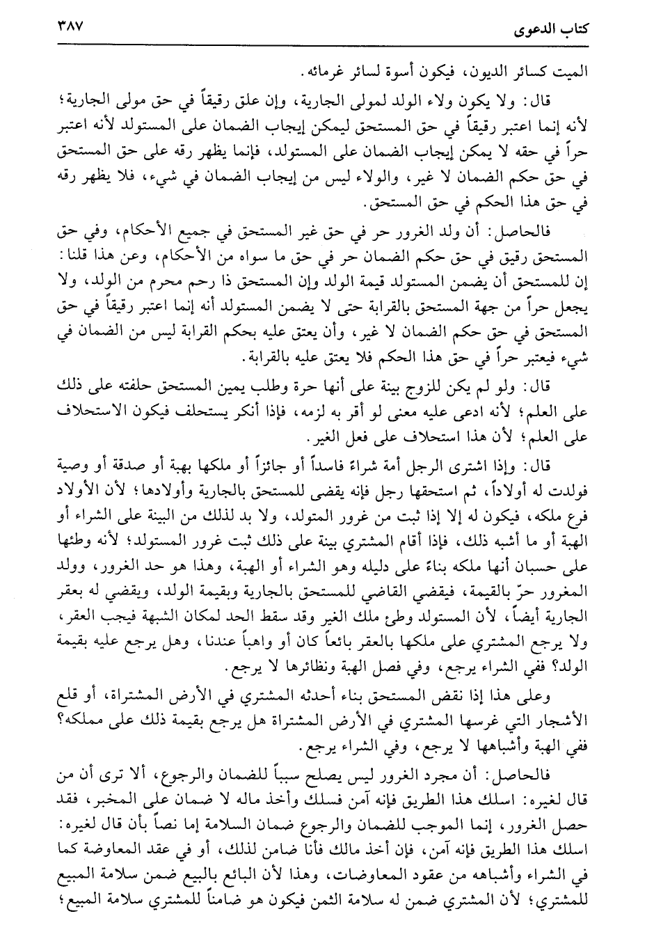 فالحاصل: أن مجرد الغرور ليس يصلح سبباً للضمان والرجوع، ألا ترى أن من قال لغيره: اسلك هذا الطريق فإنه آمن فسلك وأخذ ماله لا ضمان على المخبر، فقد حصل الغرور، إنما الموجب للضمان والرجوع ضمان السلامة إما نصاً بأن قال لغيره: اسلك هذا الطريق فإنه آمن، فإن أخذ مالك فأنا ضامن لذلك، أو في عقد المعاوضة كما في الشراء وأشباهه من عقود المعاوضات، وهذا لأن البائع بالبيع ضمن سلامة المبيع للمشتري؛ لأن المشتري ضمن له سلامة الثمن فيكون هو ضامناً للمشتري سلامة المبيع؛