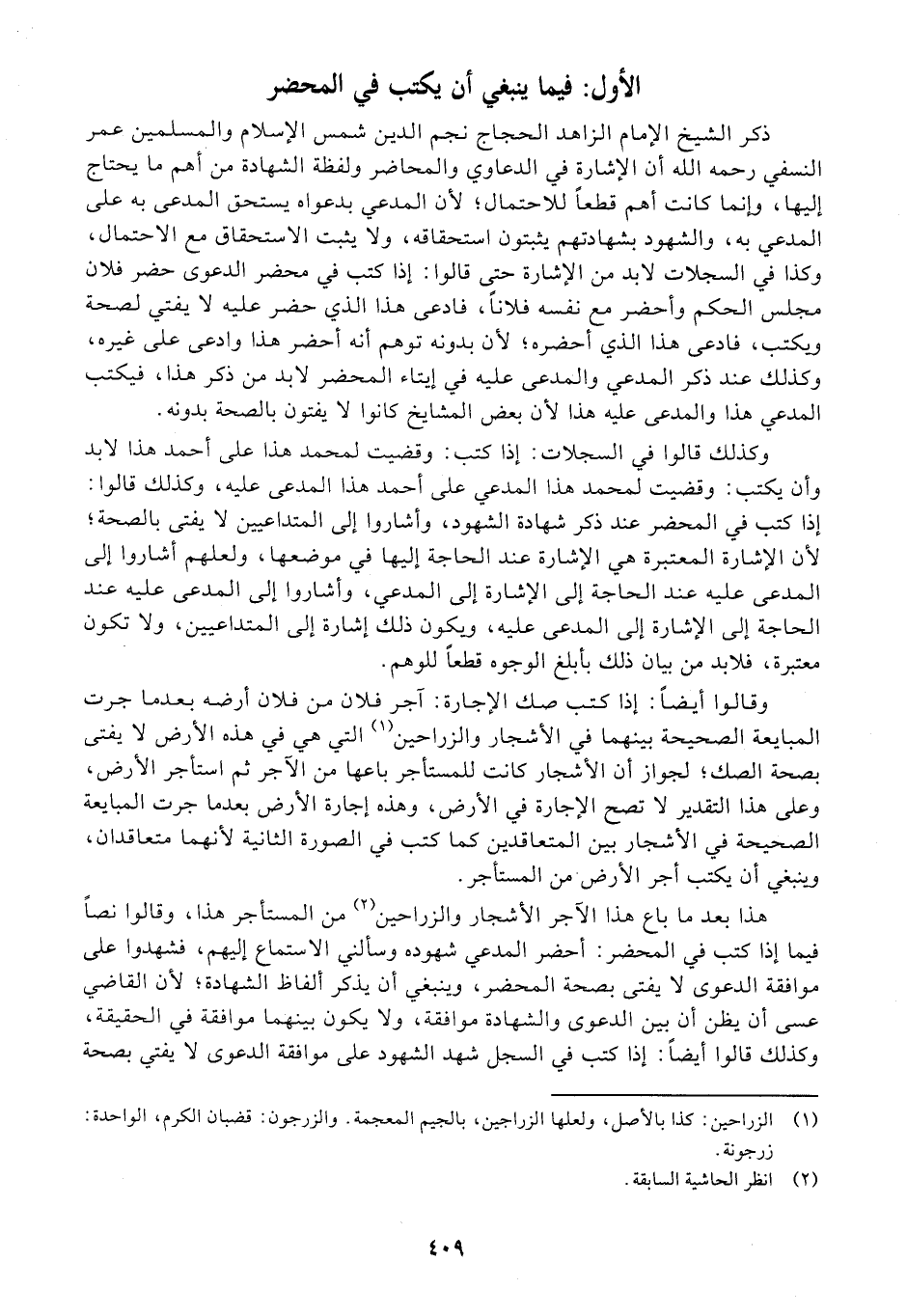 الأول: فيما ينبغي أن يكتب في المحضر