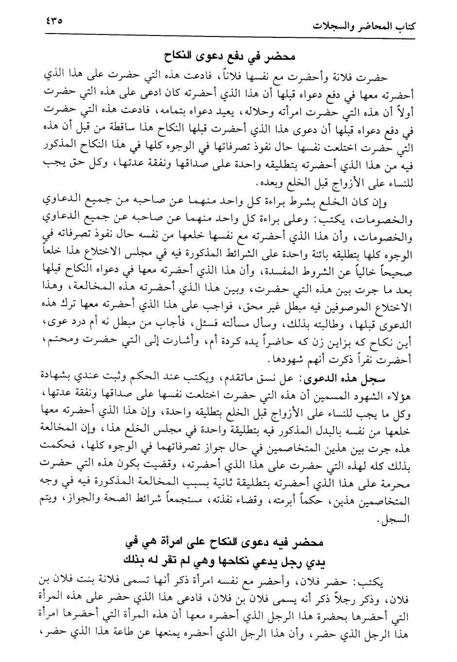 محضر فيه دعوى النكاح على امرأة هي في يدي رجل يدعي نكاحها وهي ما تقر له بذلك